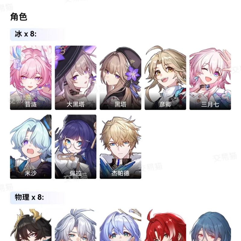 白厄霞蝶队齐全,好几个配对高熟练度,65黄,性价比高