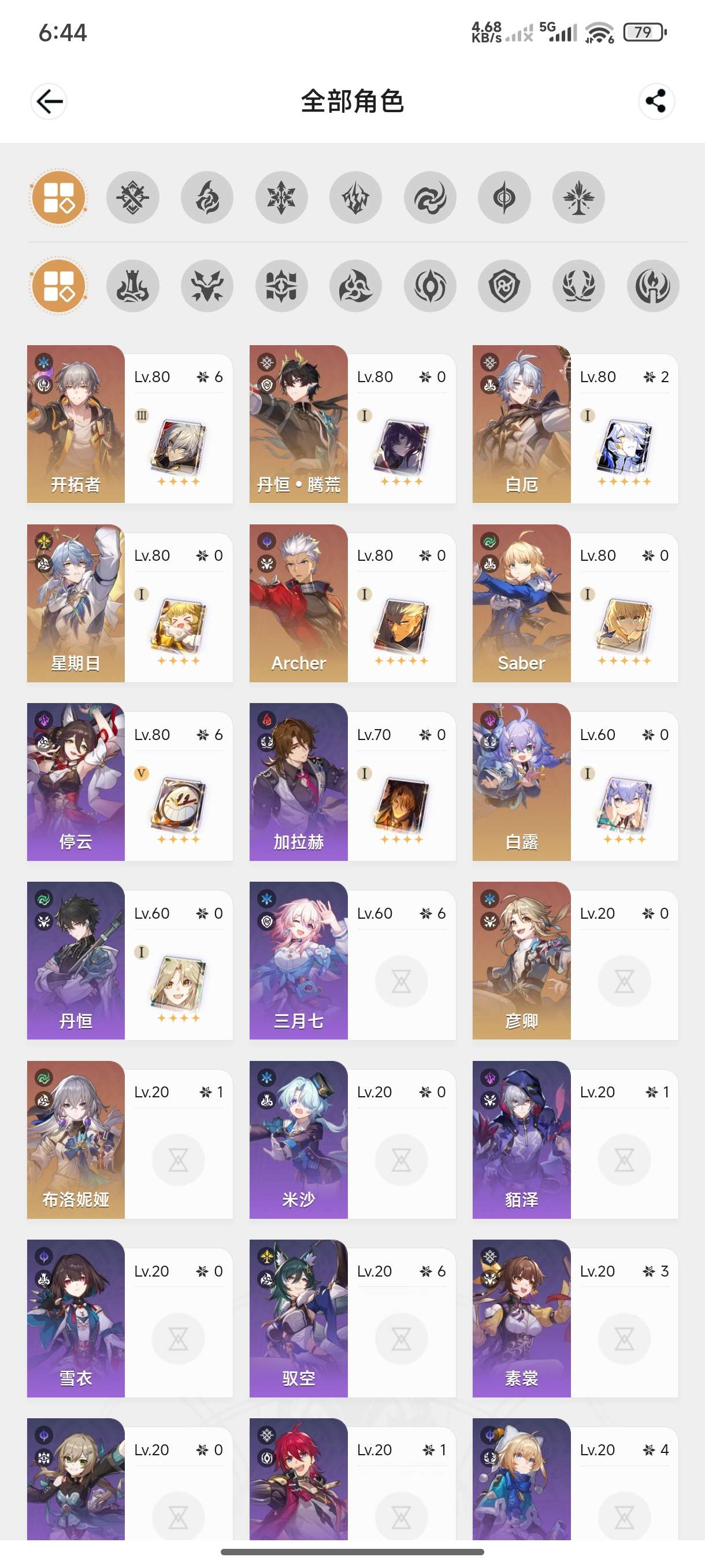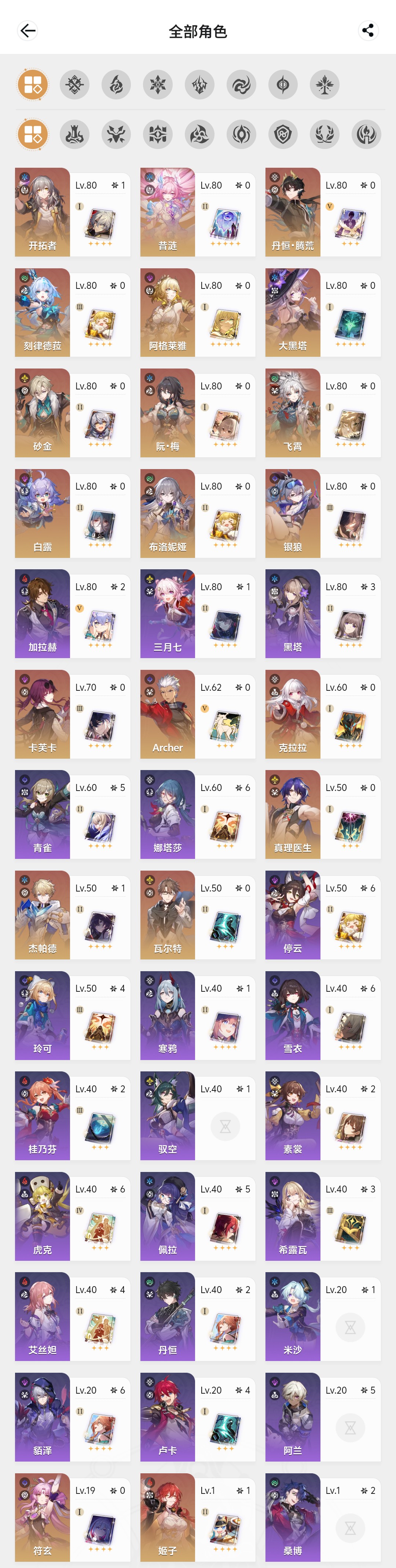 安卓官方 57黄 35角色黄 22光锥黄 23五星角色 12五星光锥 70级 女主镜流冰伤队刃鸭阮刹