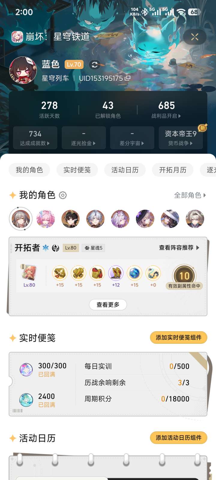 2命白厄加刻律,1+1红a和1+1知更鸟,不死途,三队高练,还有好多资源没有拿适合新手