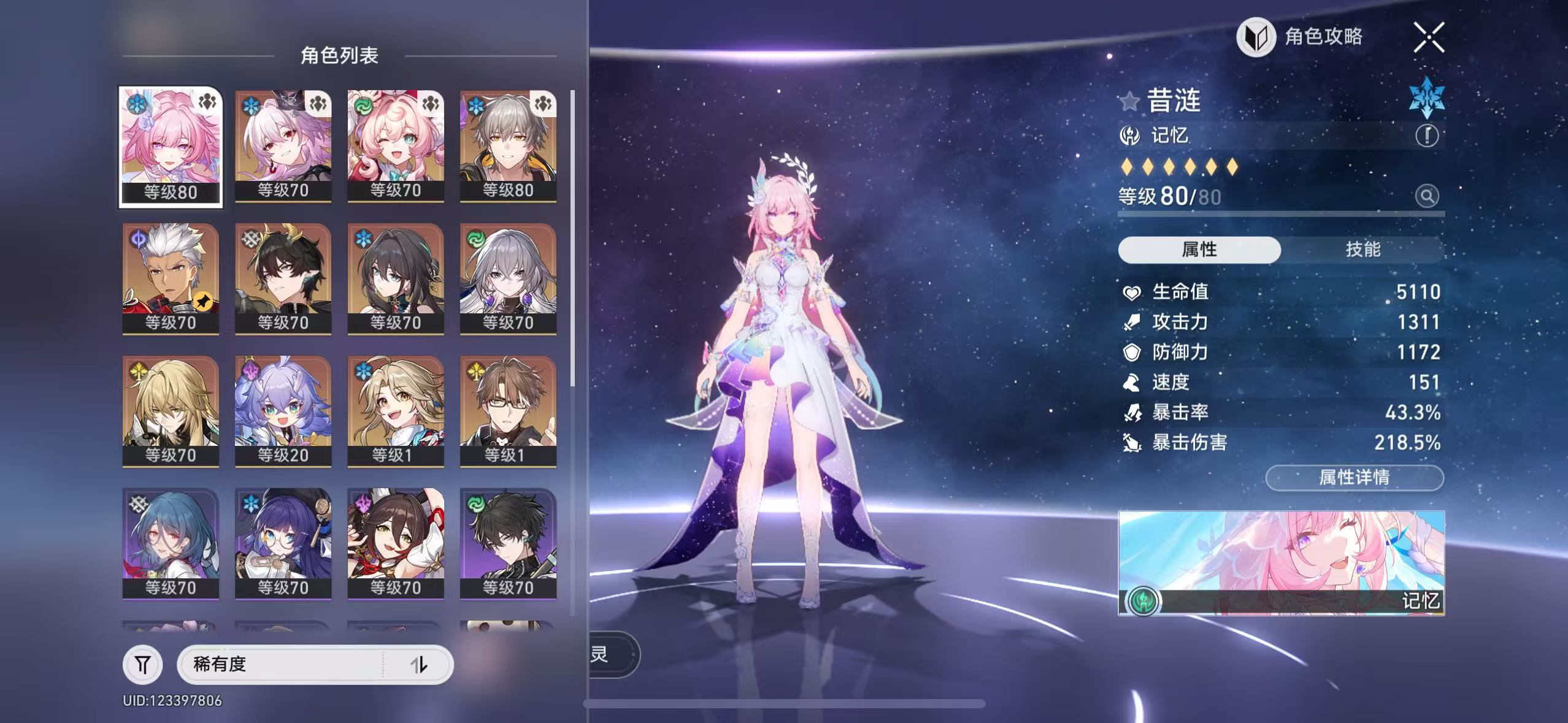18黄 15角色黄 3光锥黄 12五星角色 3五星光锥 47级 女主