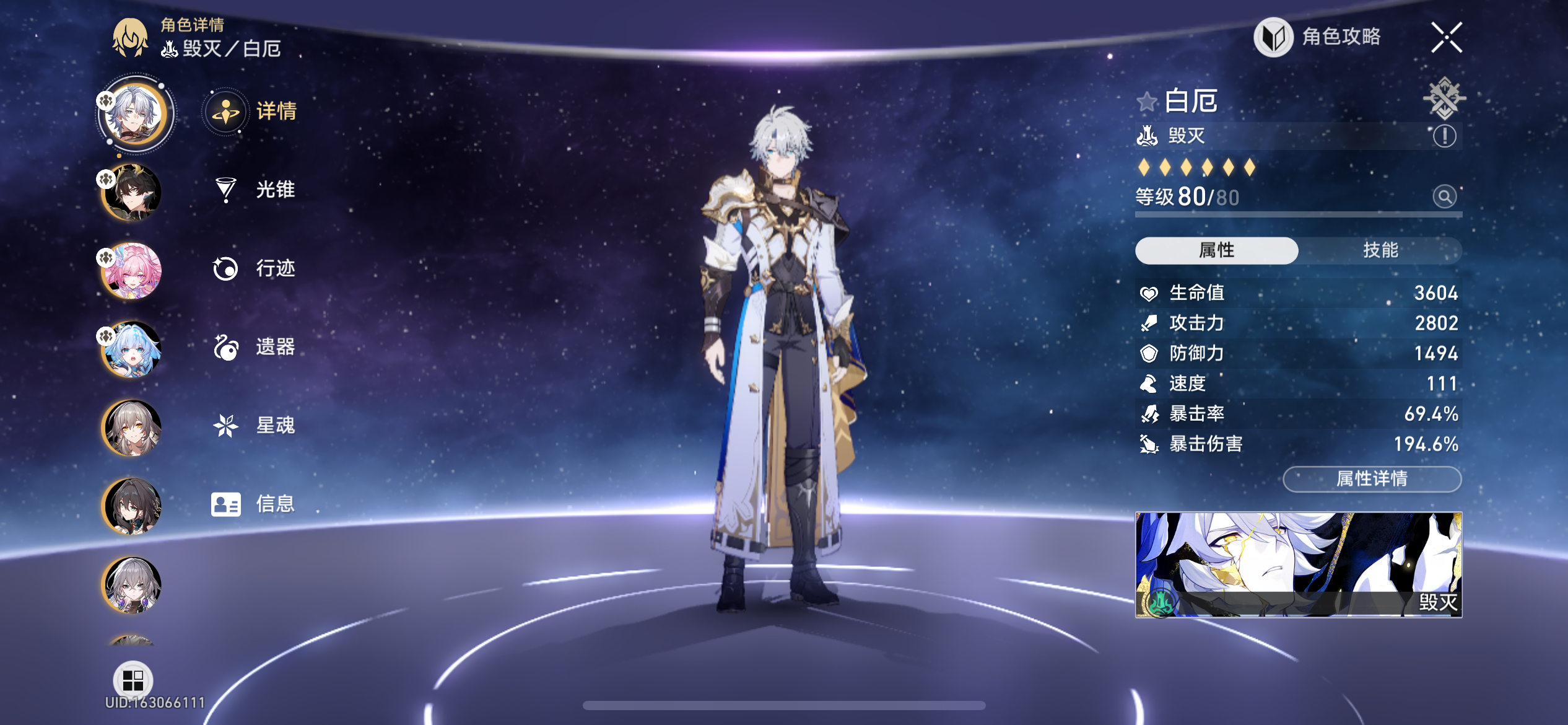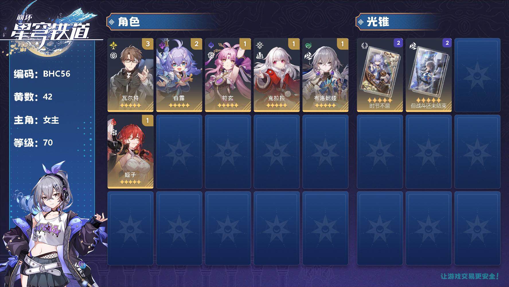 崩铁账号女主满配白厄队有六十抽一命刻律德菈