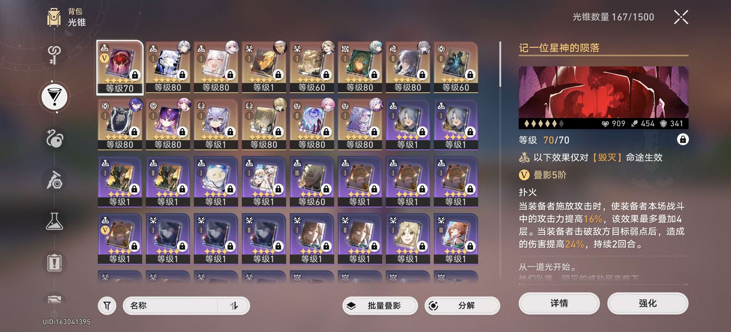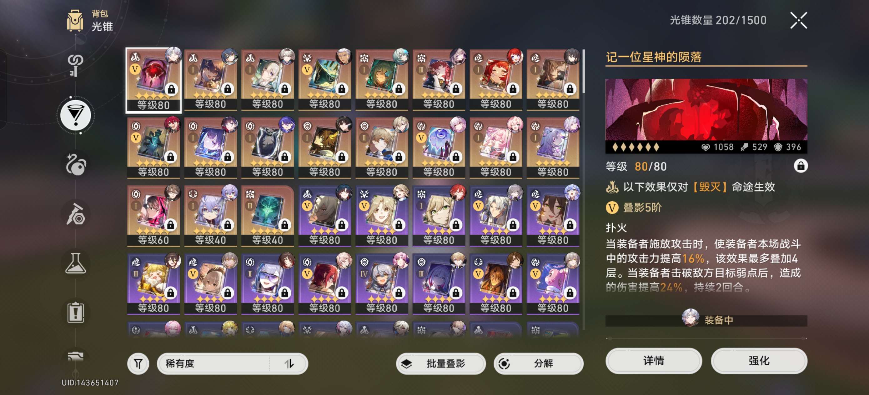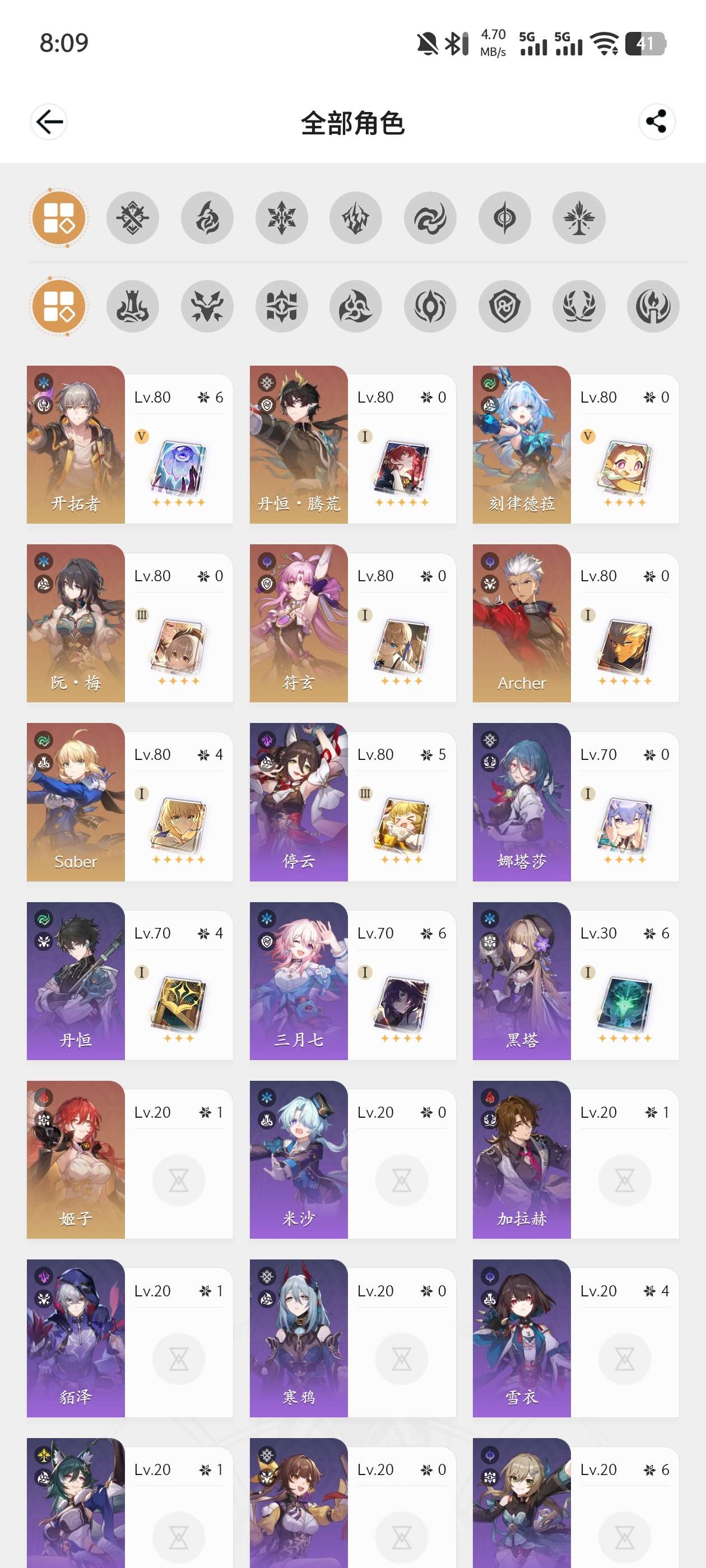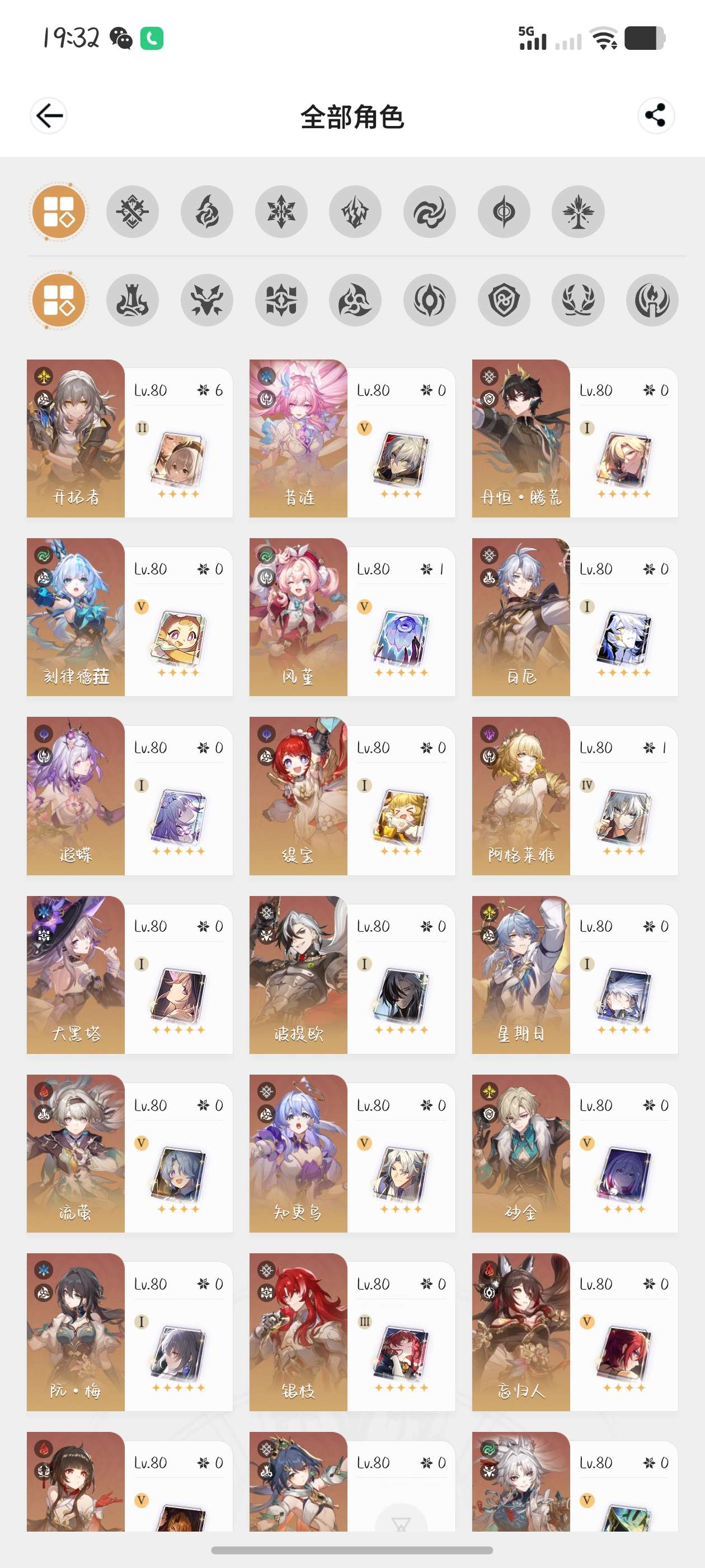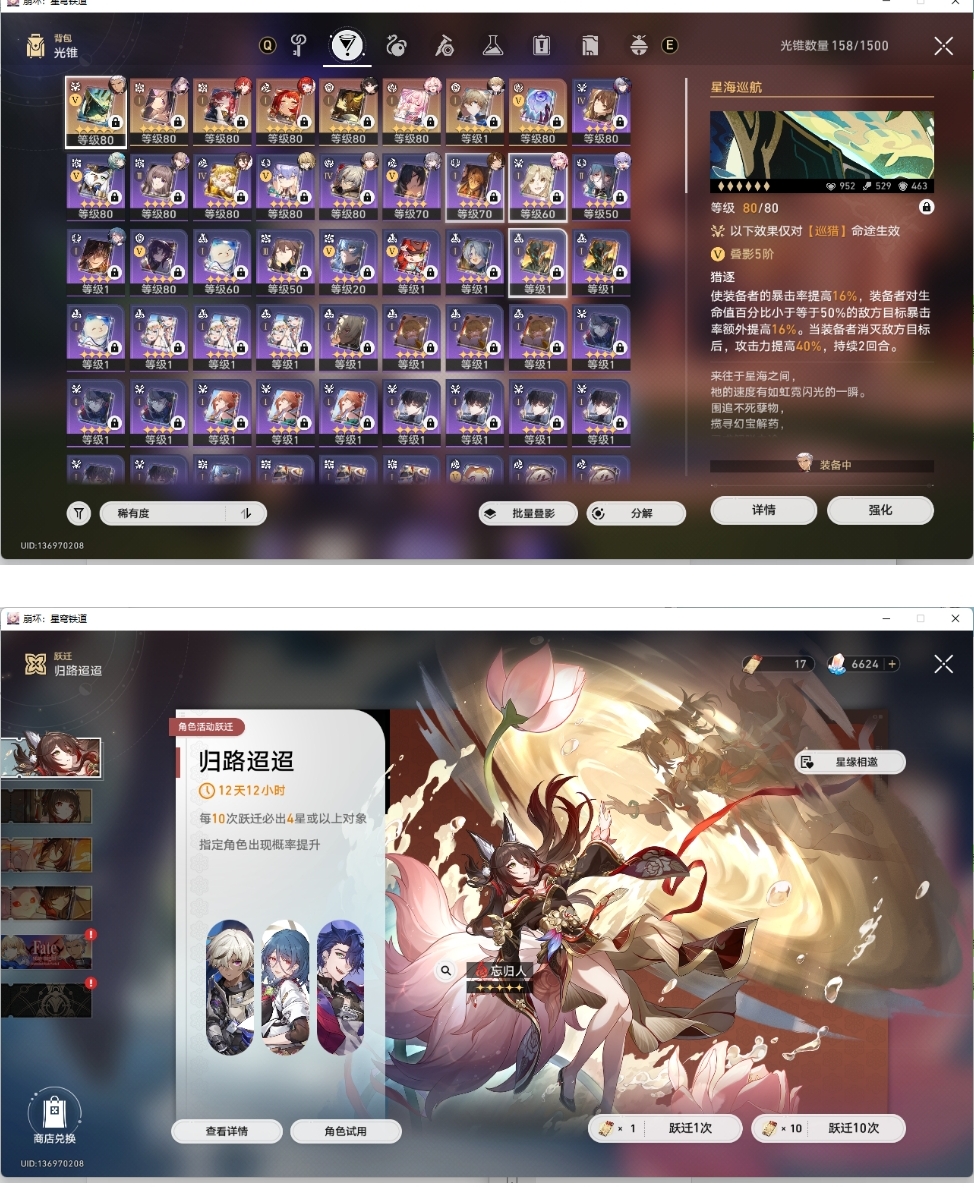 满命大黑塔二命缇宝一命风堇都带专武那刻夏布洛罗刹,带四十多抽