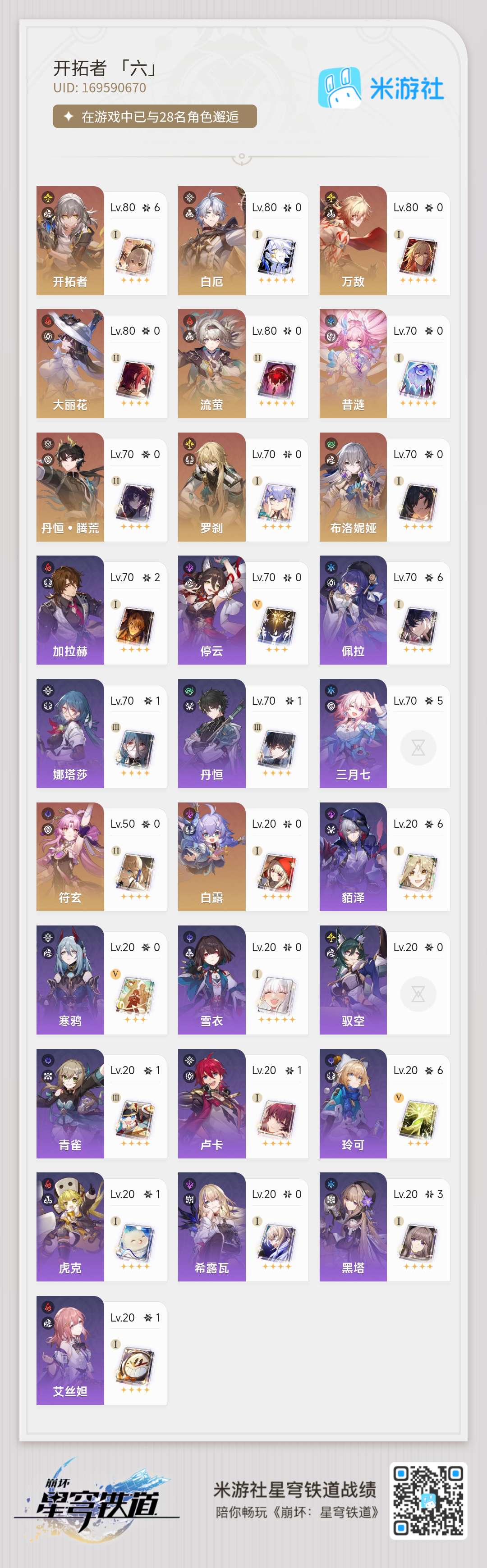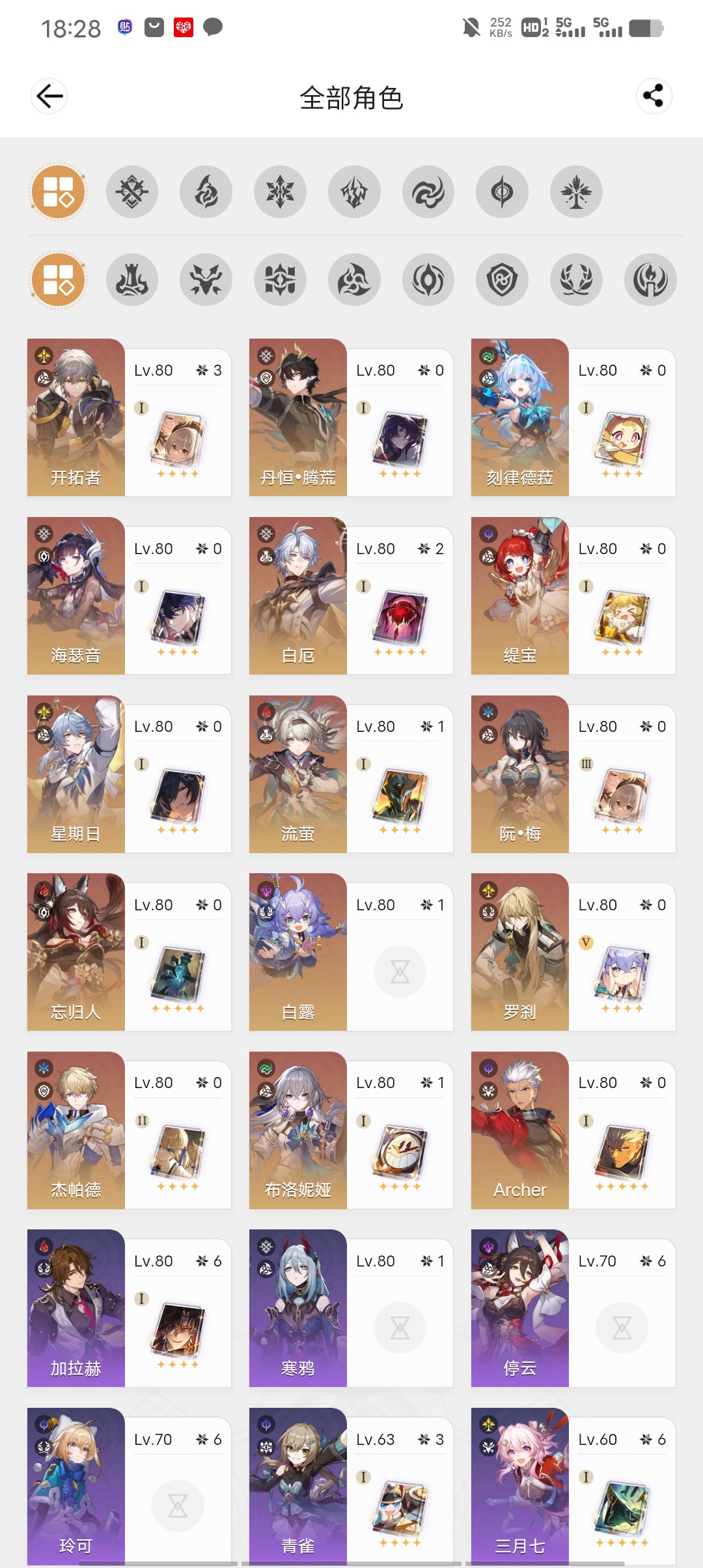 击破队配置齐全21流萤21大丽花,大保底已垫50抽,账号探索度低,翁法洛斯宝箱没怎么摸