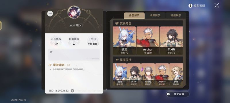 剧情全过,活动差不多都过了 正常号,有20多个限定金,也不是很痛苦号,基本深渊都可以打