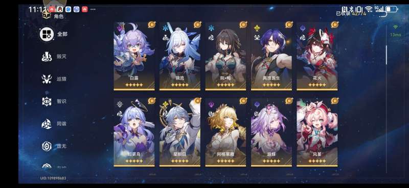 2+1白厄,1+0提宝,0+0遐蝶,0+1风瑾,有星期日,知更鸟,大黑塔等多个主流配队