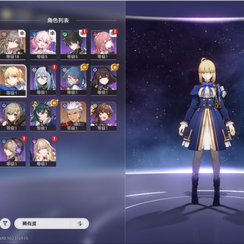 官服70级女主 01瑕蝶 00昔涟 00长夜月10风堇 10提宝 01阿格莱亚 00星期日