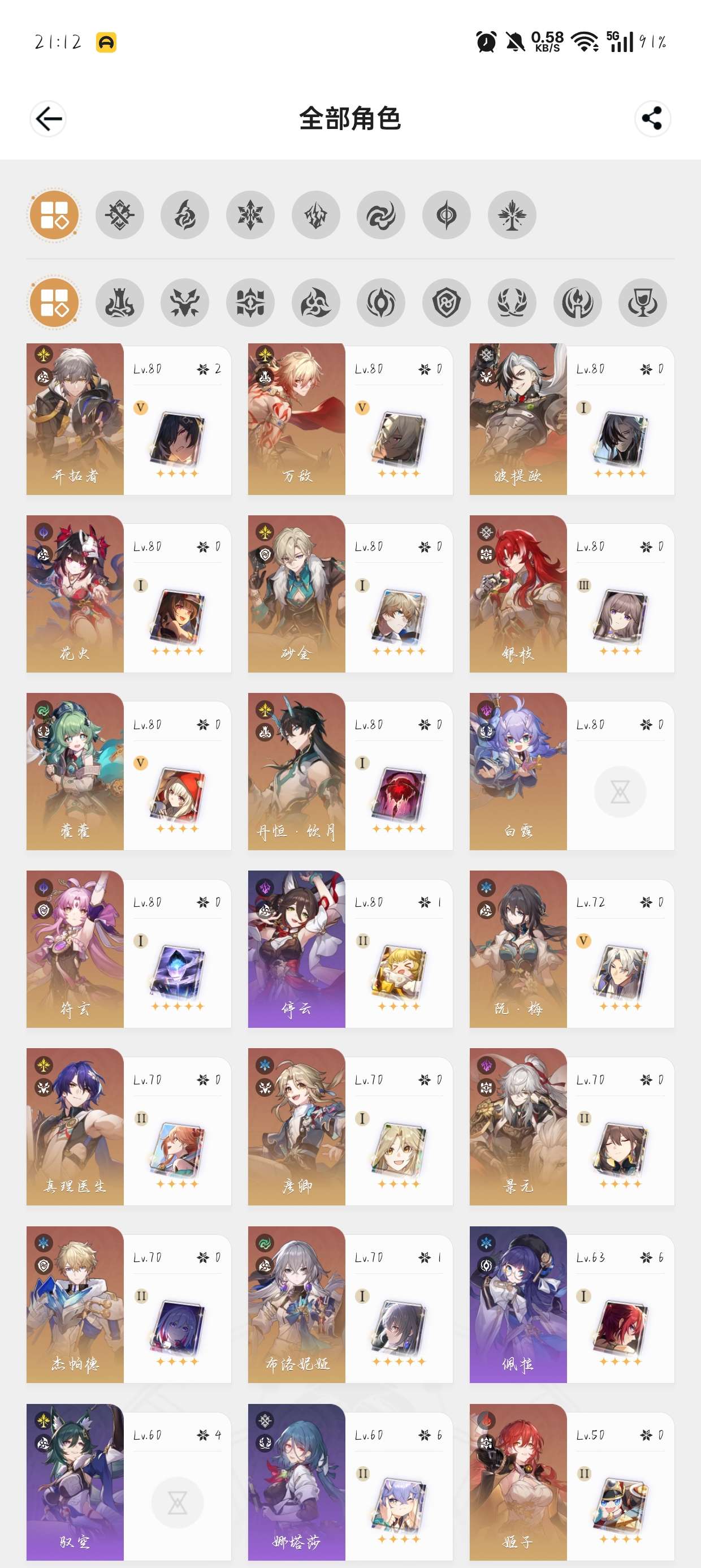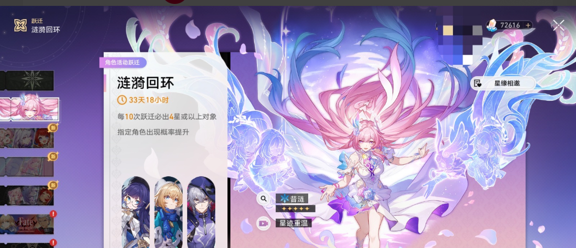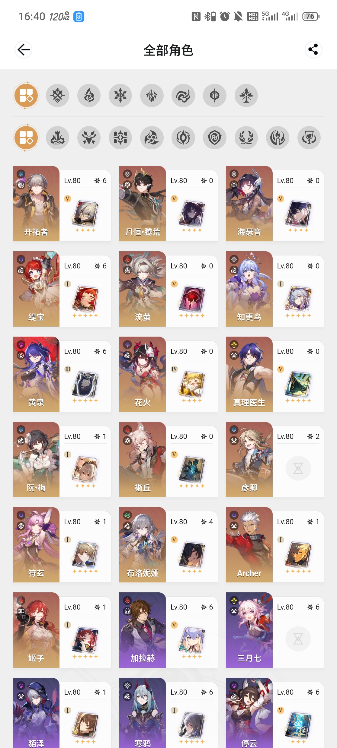 长夜月+昔涟+火花+红A+腾荒+5W7星穹+80通票