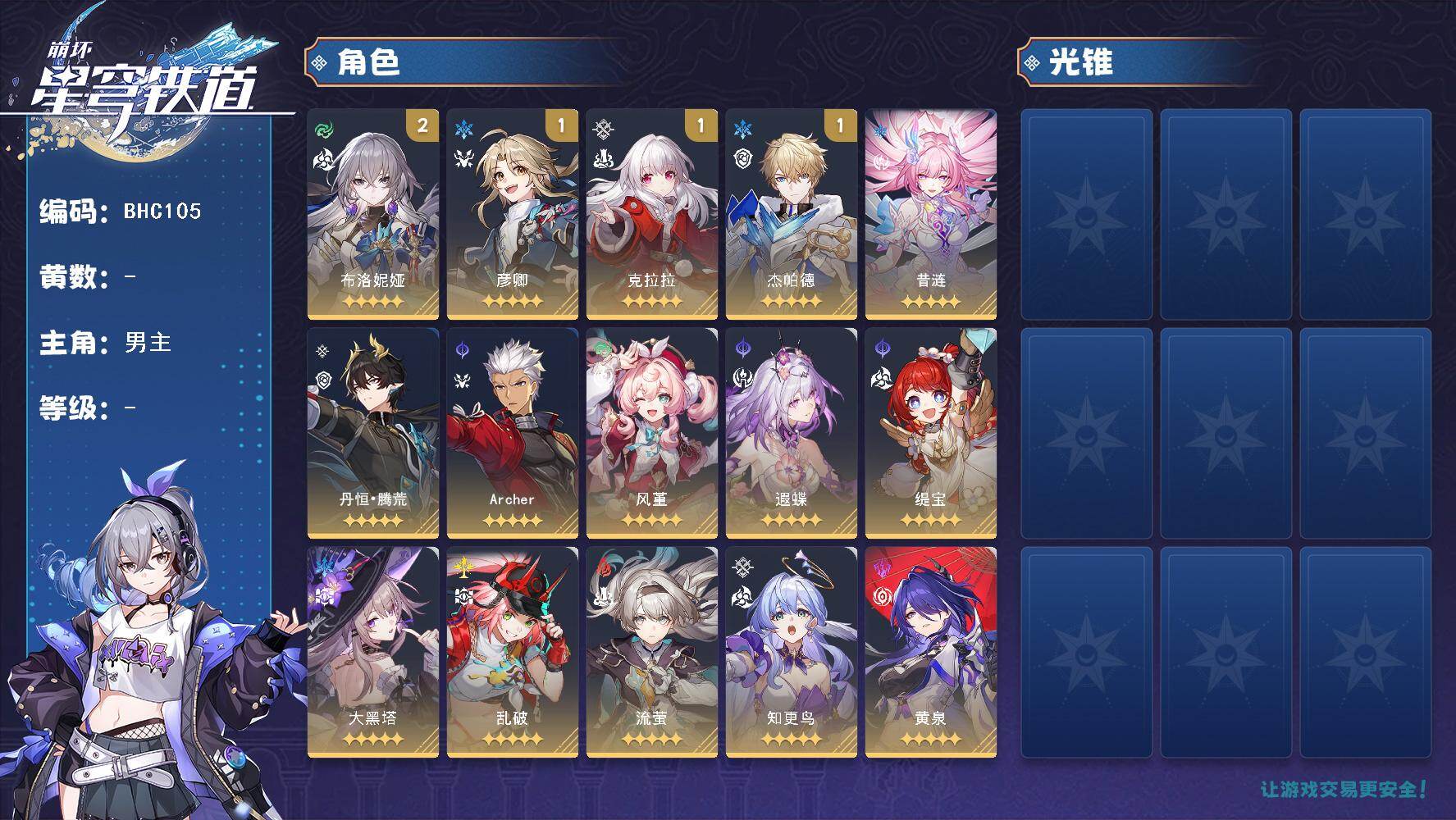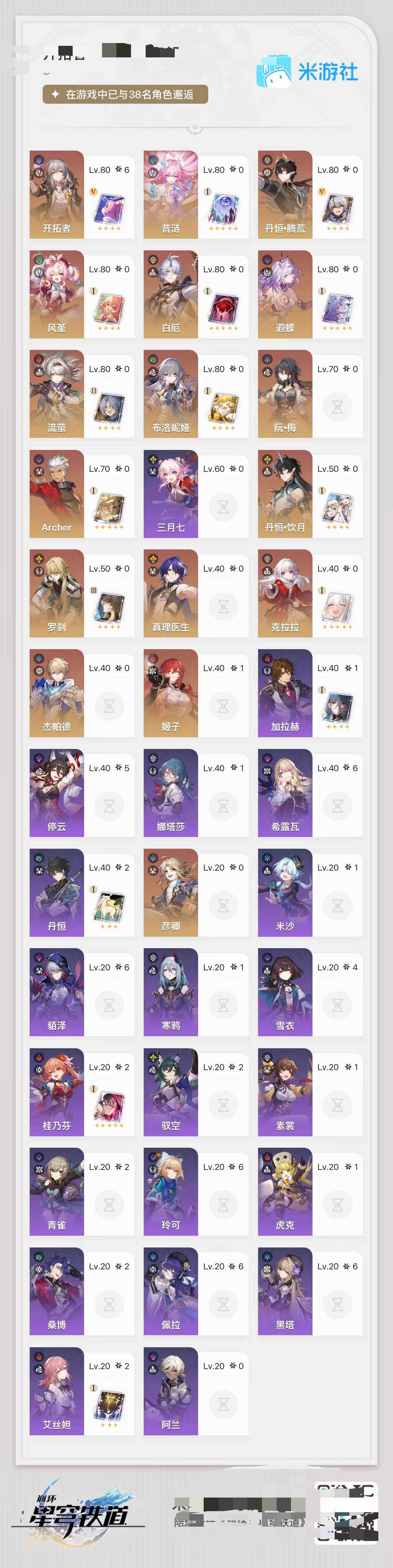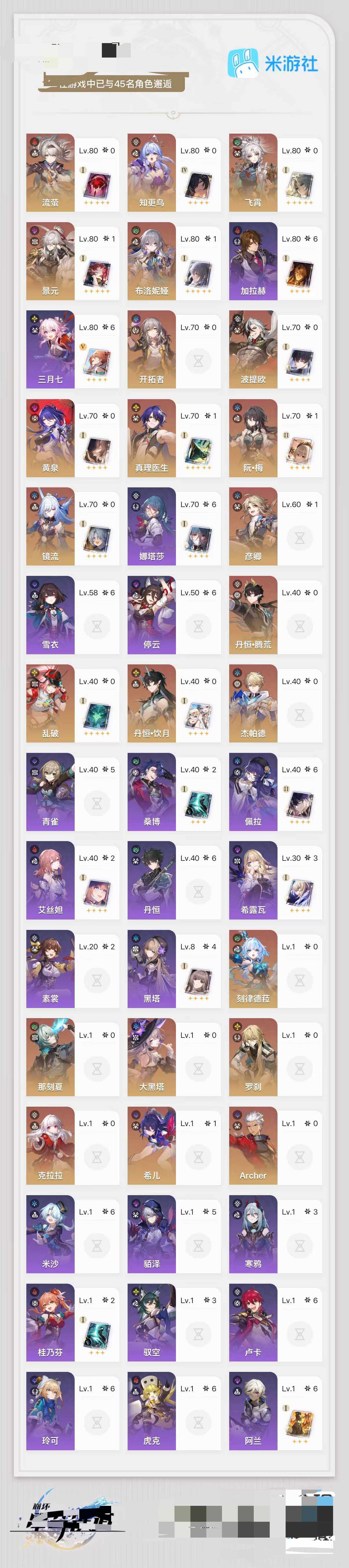88黄 55角色黄 33光锥黄 32五星角色 26五星光锥 70级