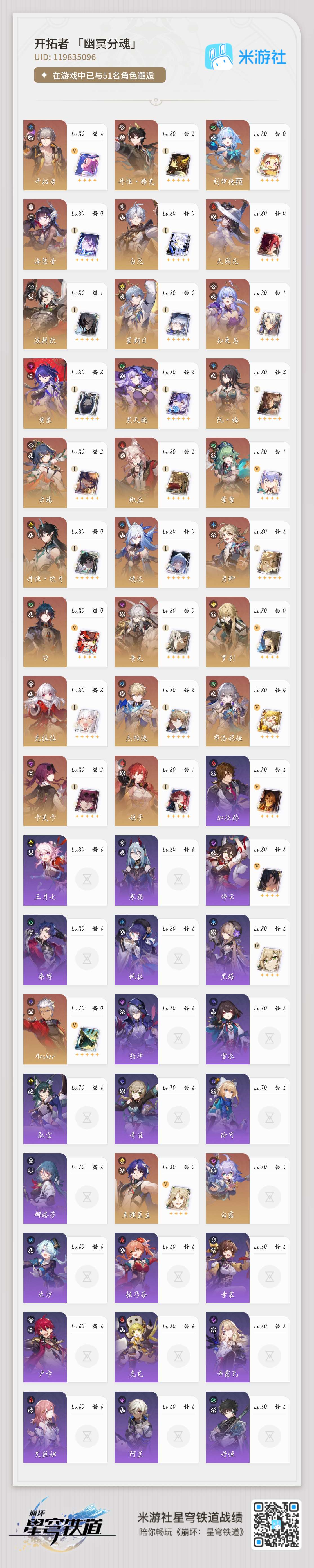 崩铁官服自玩号14金记忆队21遐蝶10长夜月21风堇21昔涟8金白厄队21黄泉20飞霄10缇宝10鸟