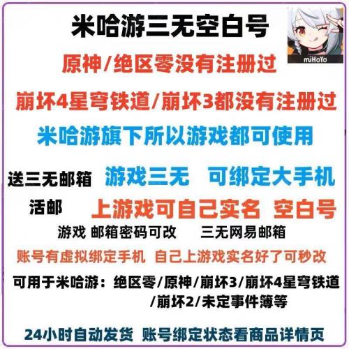 米哈游账号绝区零原神崩坏星穹铁道未注册角色白号空号三无初始号