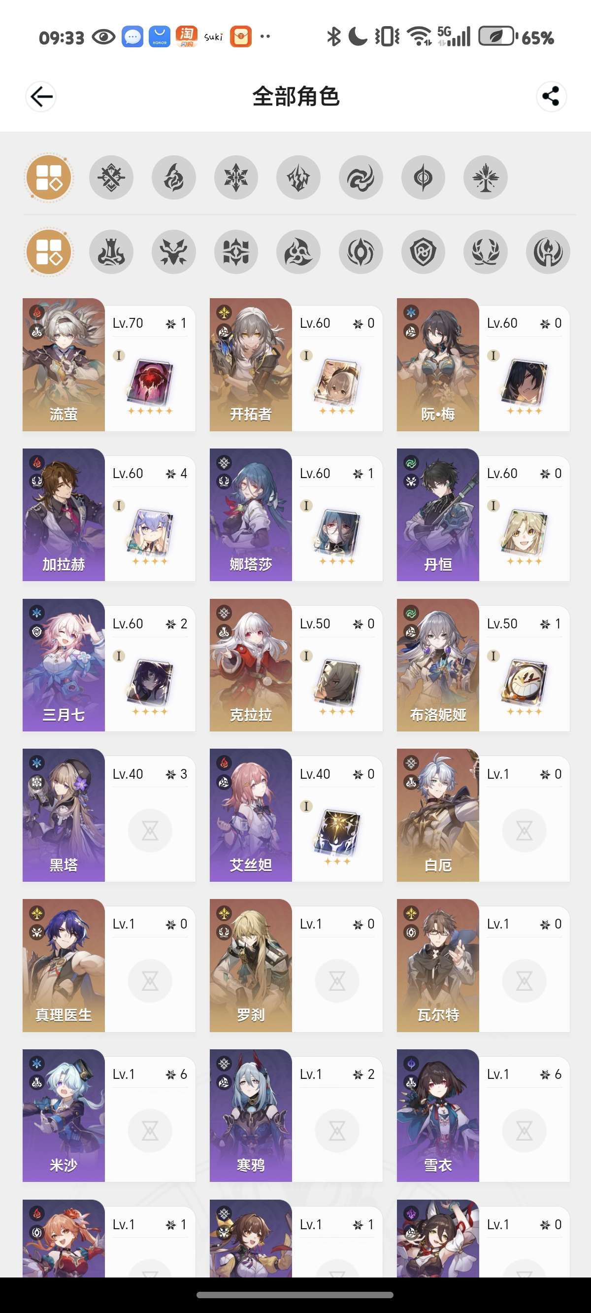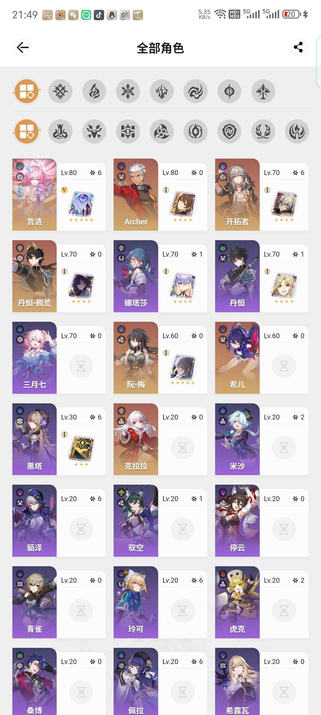 不是自抽号 签到号 瑕蝶长月夜龙丹 23级资源主线没碰 昔涟已经68抽左右了马上出了