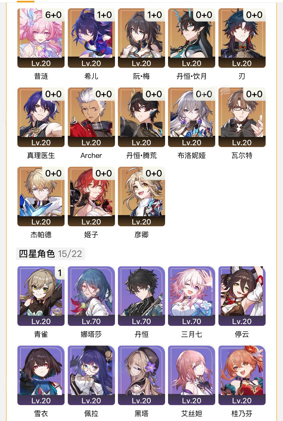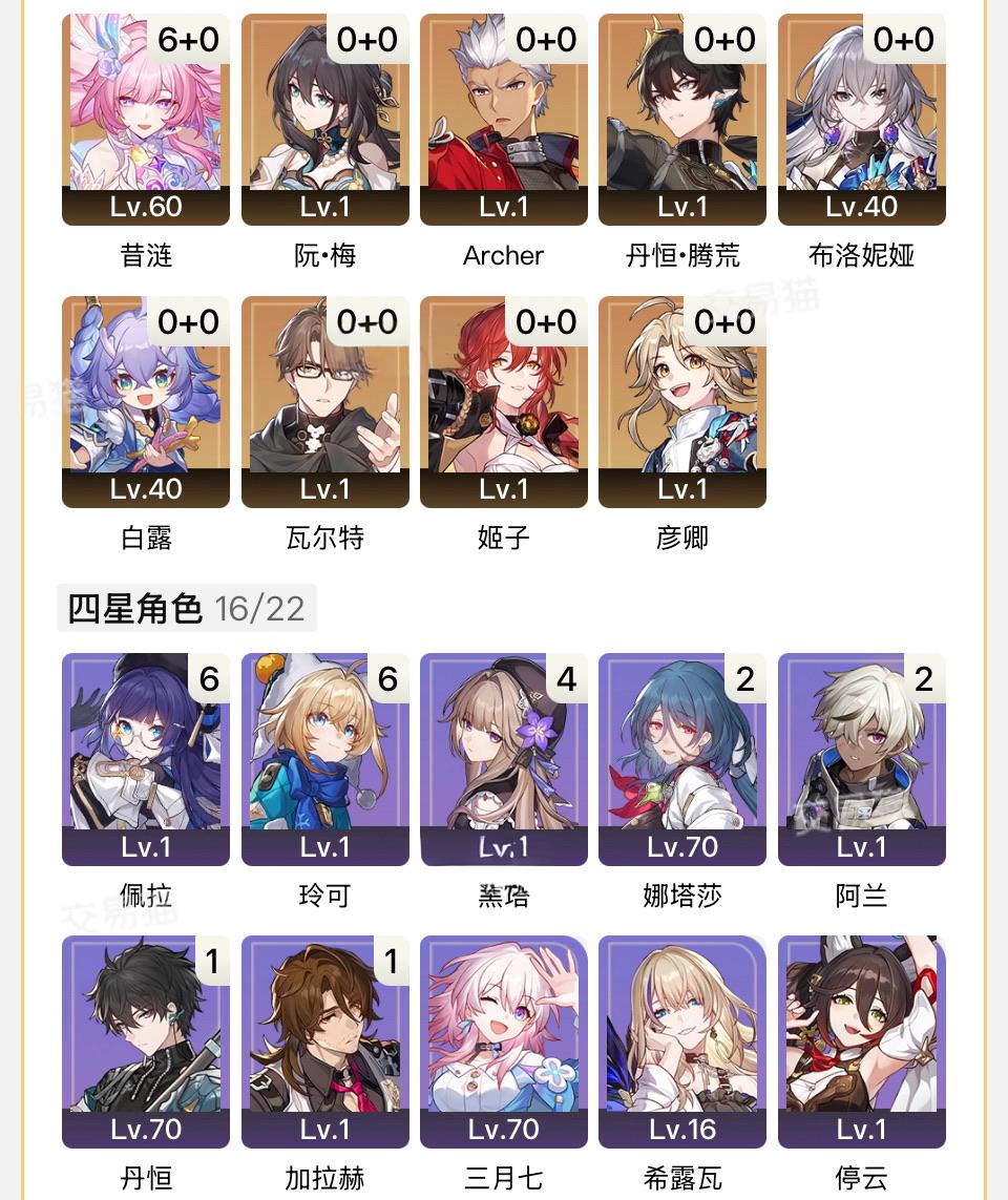 官服7-15级【昔涟+风堇+真理+红A+盾丹】+33通票+新手池