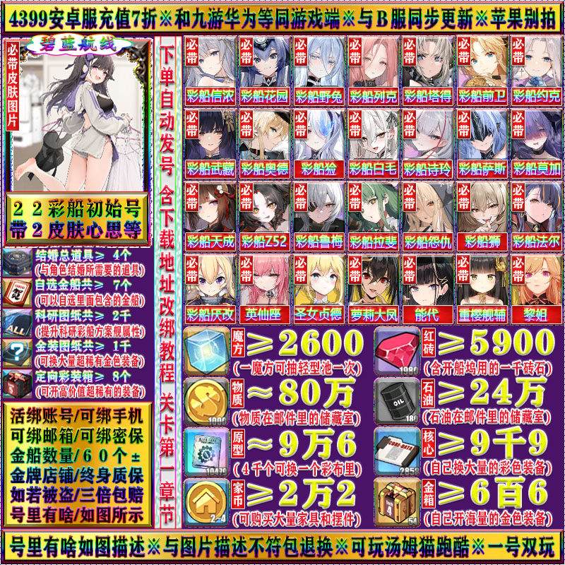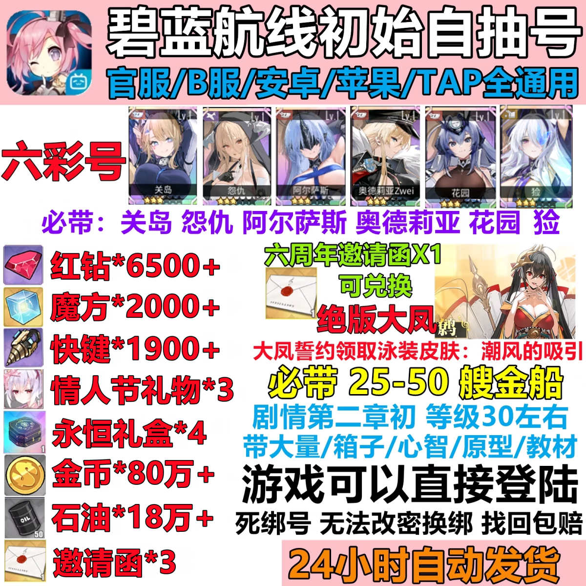 碧蓝航线初始号自抽官服B服通用安卓苹果ios0带6彩船自选号组合号