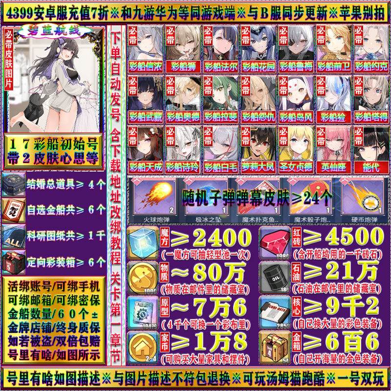 碧蓝航线初始号自抽号安卓b服官服苹果钻石金船魔方红钻彩船怨仇