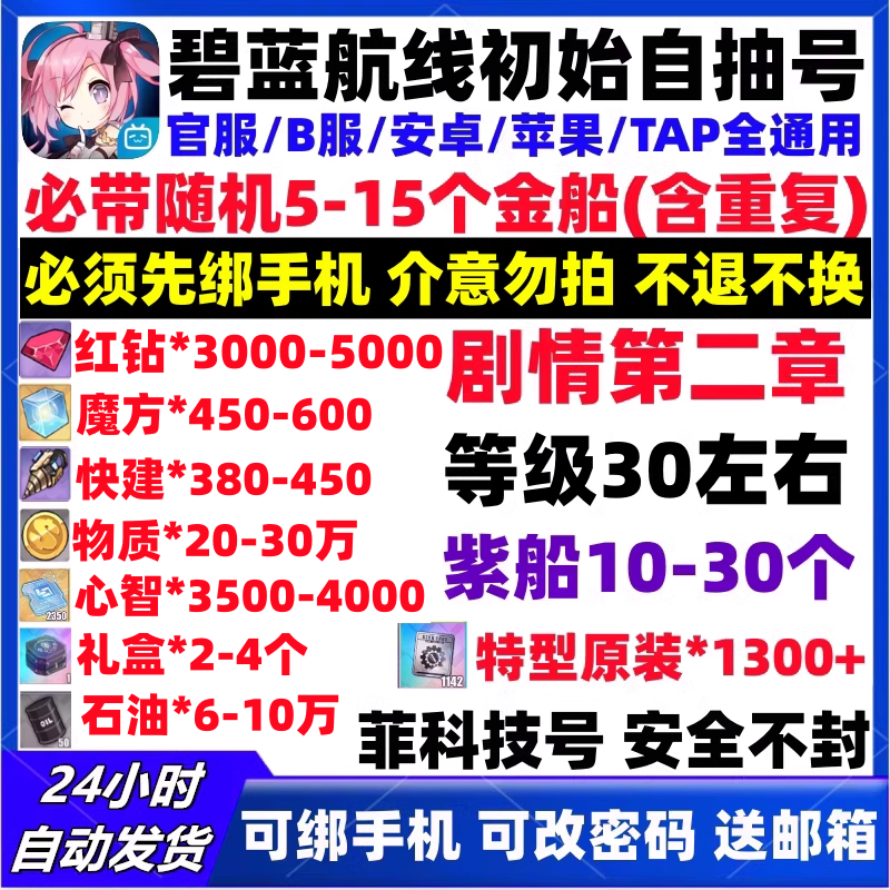 碧蓝航线初始号自抽号安卓苹果ios0自选组合彩船金船官服/B服