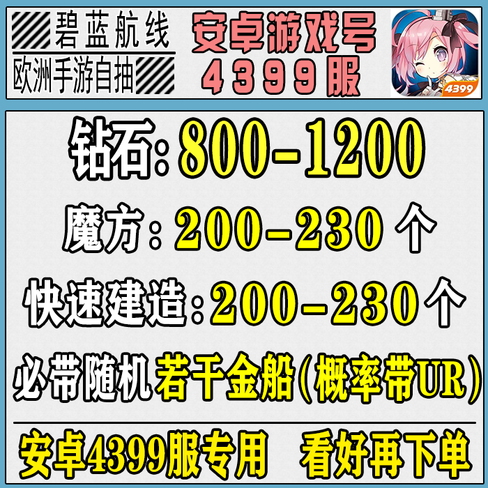 碧蓝航线自抽号安卓4399国服自抽初始石头号魔方红钻石头金船