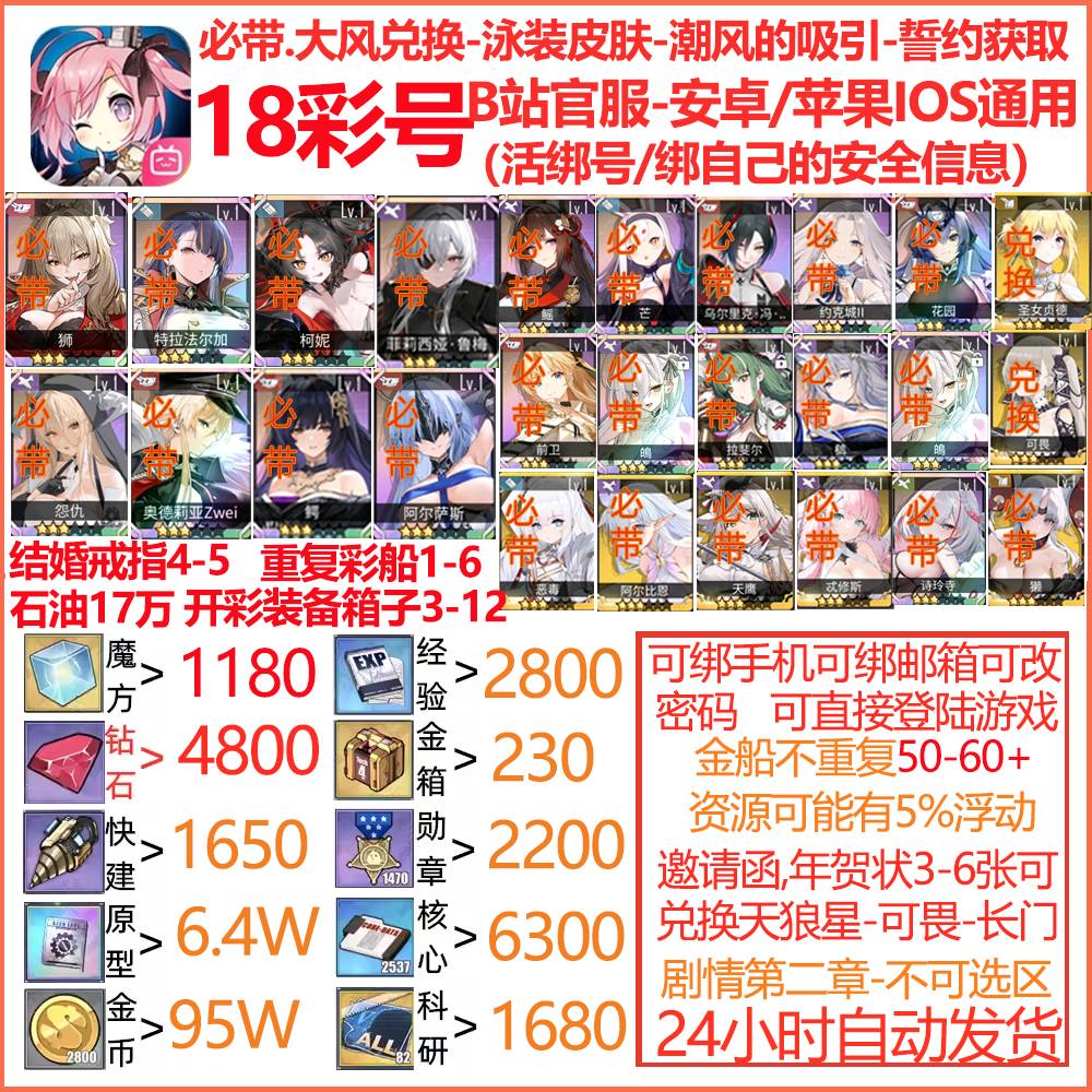 碧蓝航线【安卓B服】碧蓝航线初始号UR彩船狮安卓ios苹果b服魔方红钻金船号自抽号