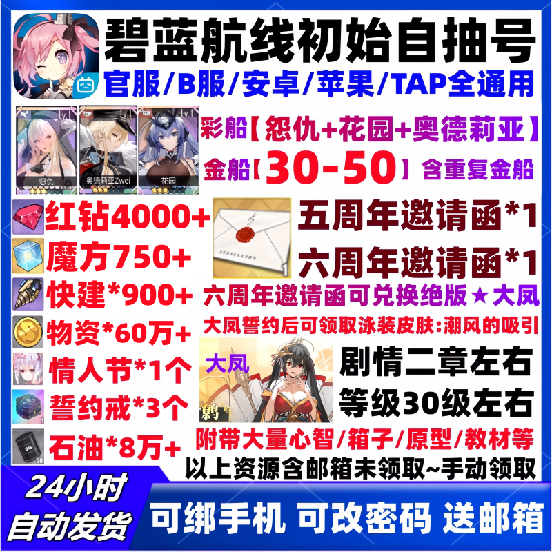 碧蓝航线【安卓B服】碧蓝航线初始号官服b服安卓苹果自抽号大凤金船钻石魔方组合