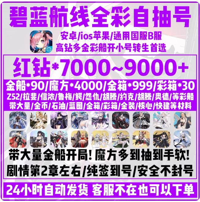 需绑手机-3000钻850魔方+3彩(怨奥花)+天鹰+长门+15金船
