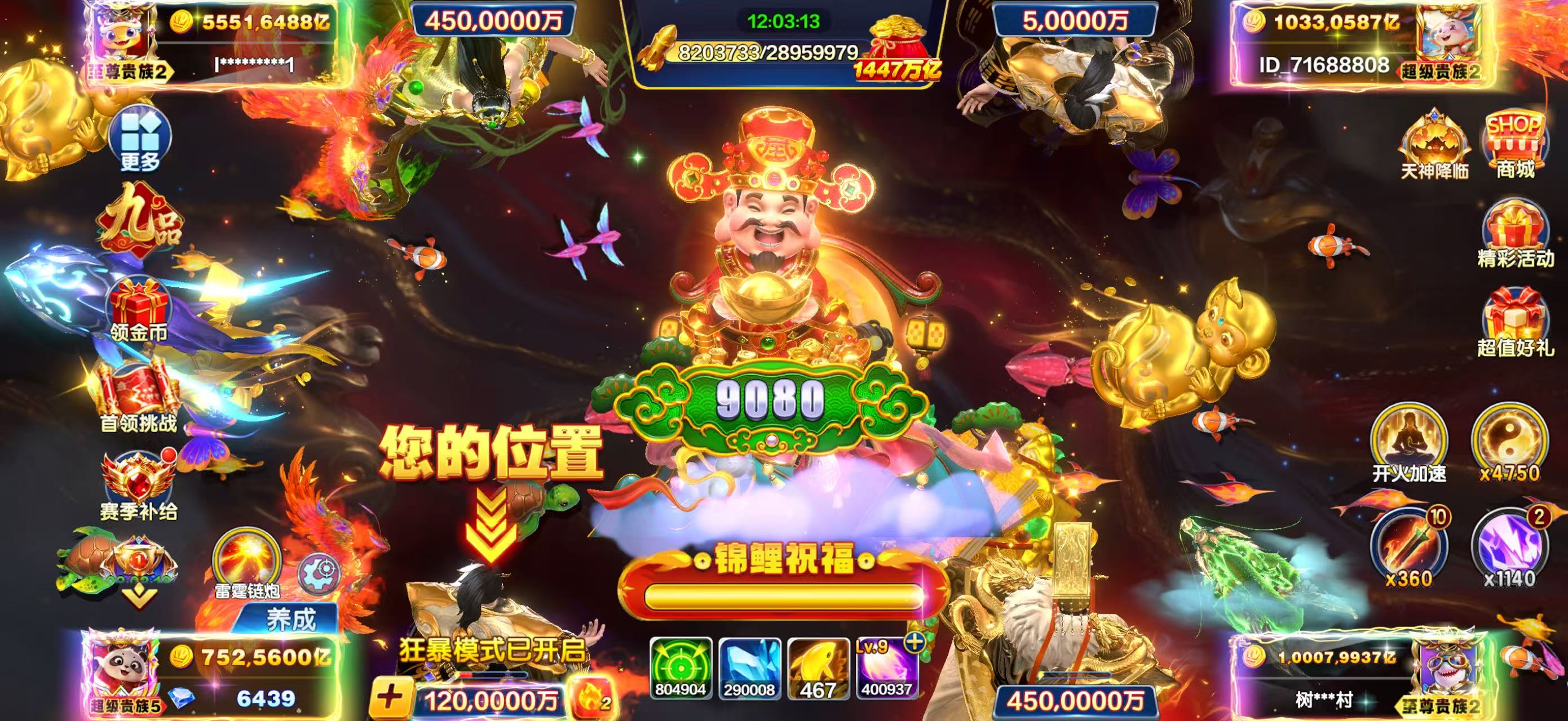 捕鱼大咖小米版。v11,15亿炮。可升17亿炮。带永久天神副炮, 630万亿卖断1188出!