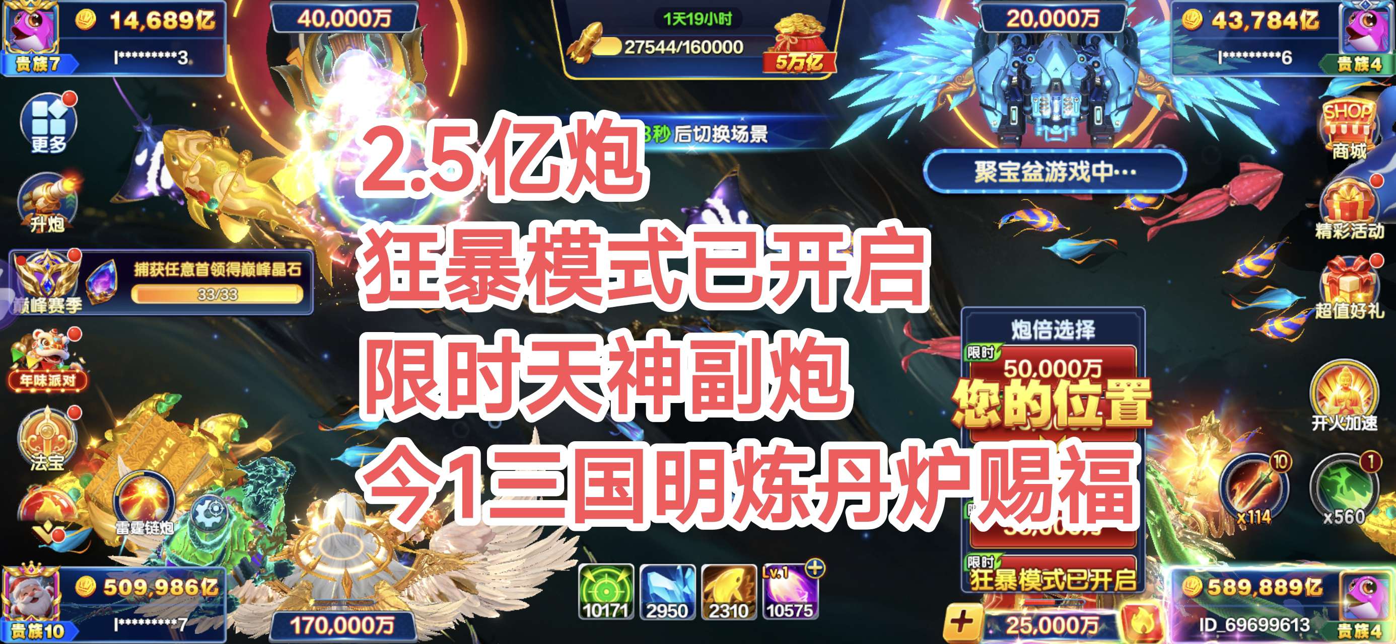 捕鱼大咖顶级s5 马上s6文字号 25炮 2个满级天神