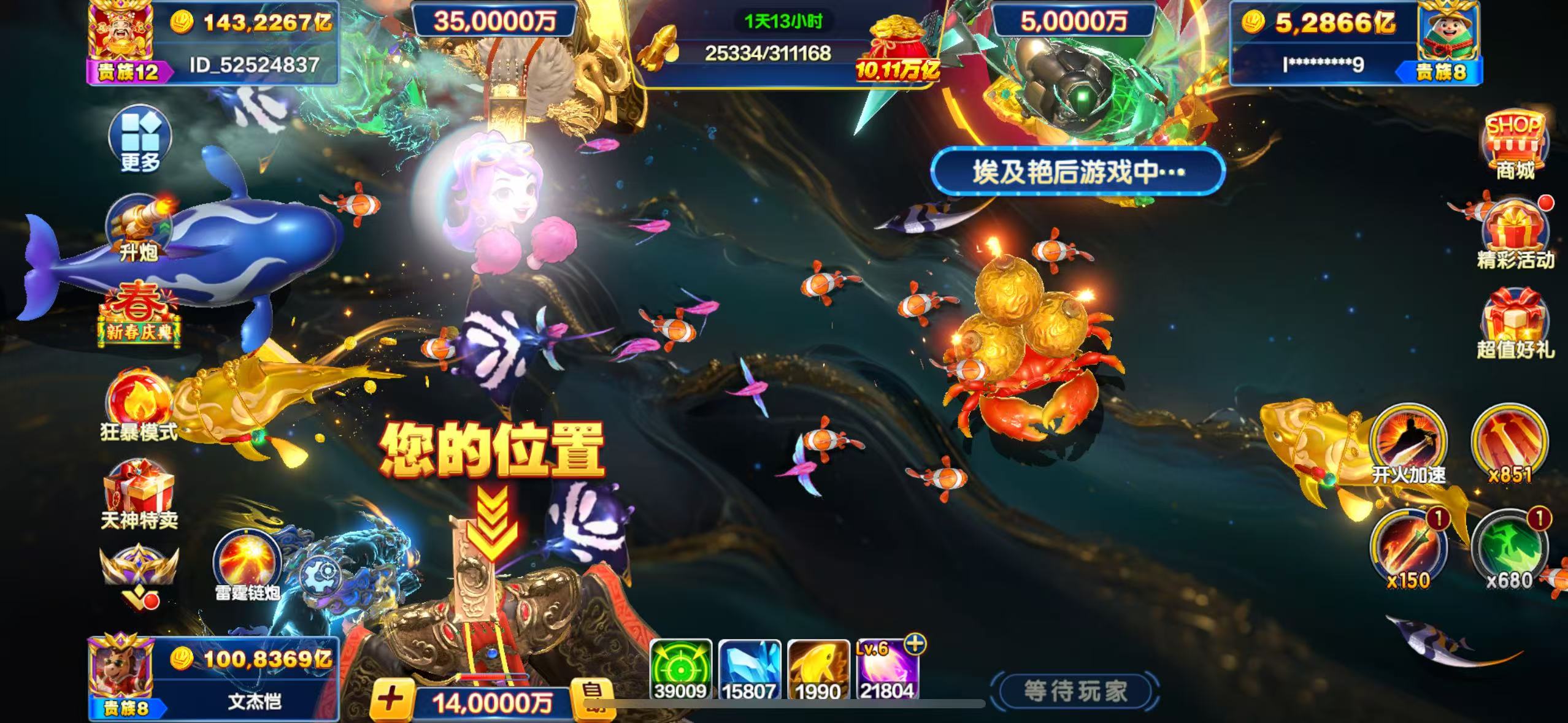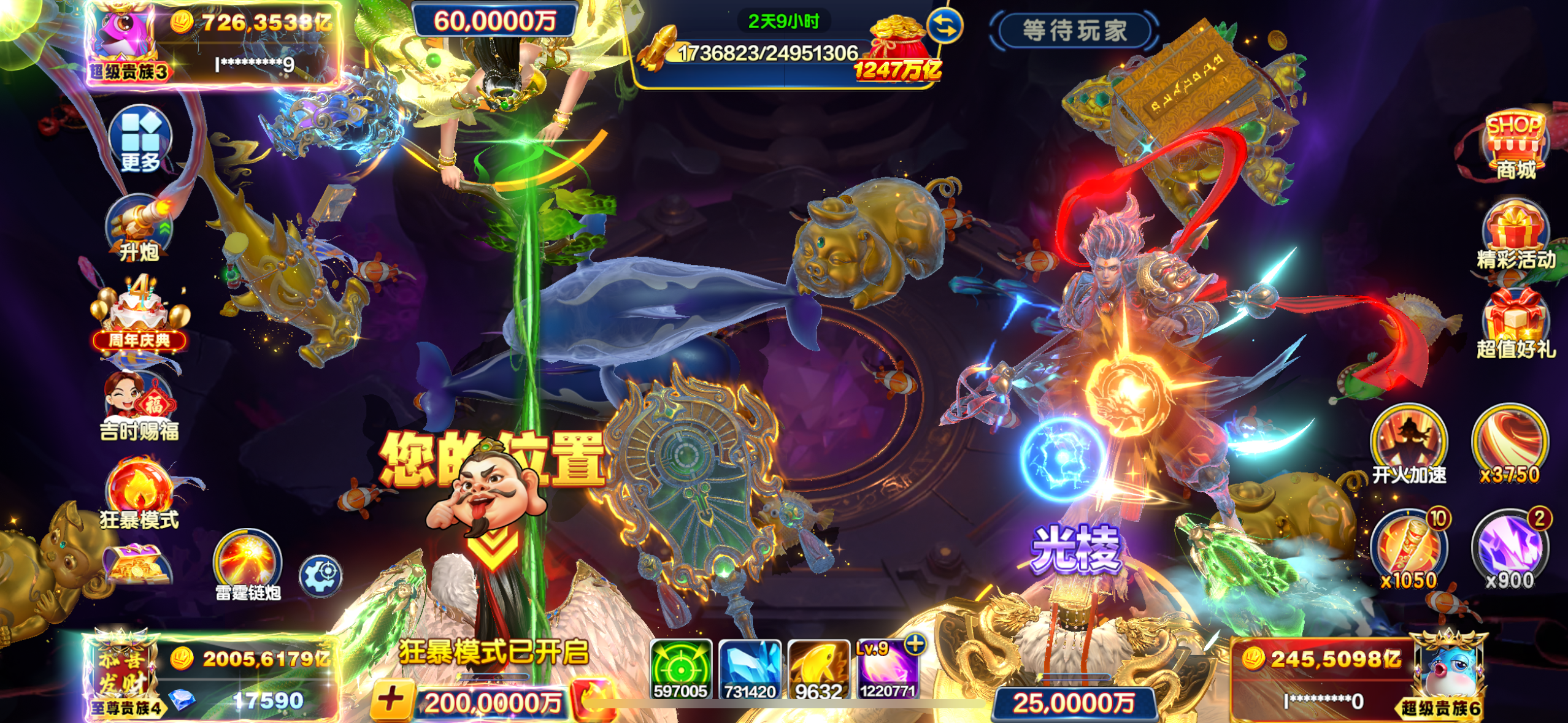 捕鱼大咖无限火力纯玩,2000万亿,需要更多分数联系客服。