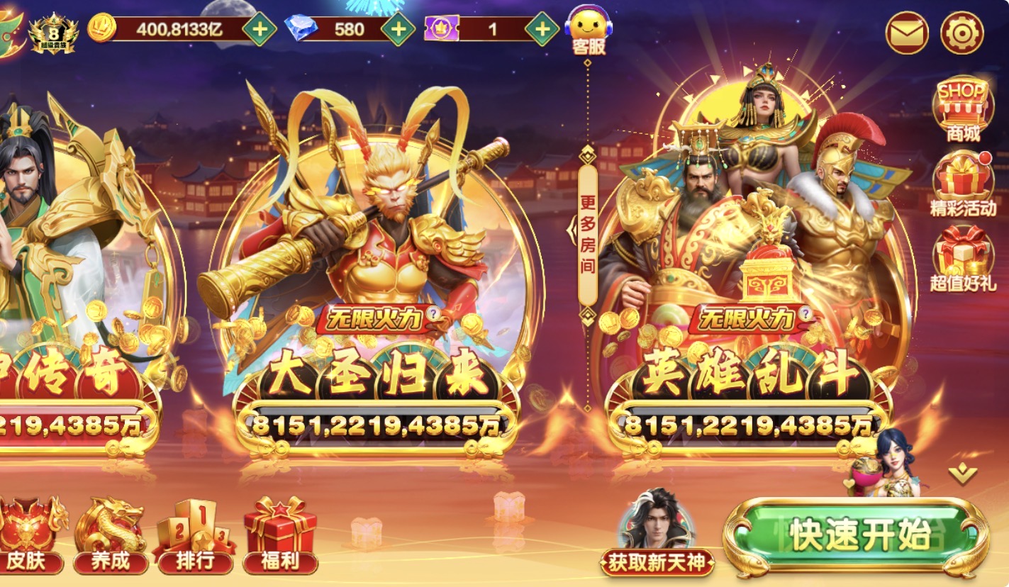 大咖官服,苹果安卓通用,10亿炮限时25亿炮395万亿,永久天神,狂暴已开