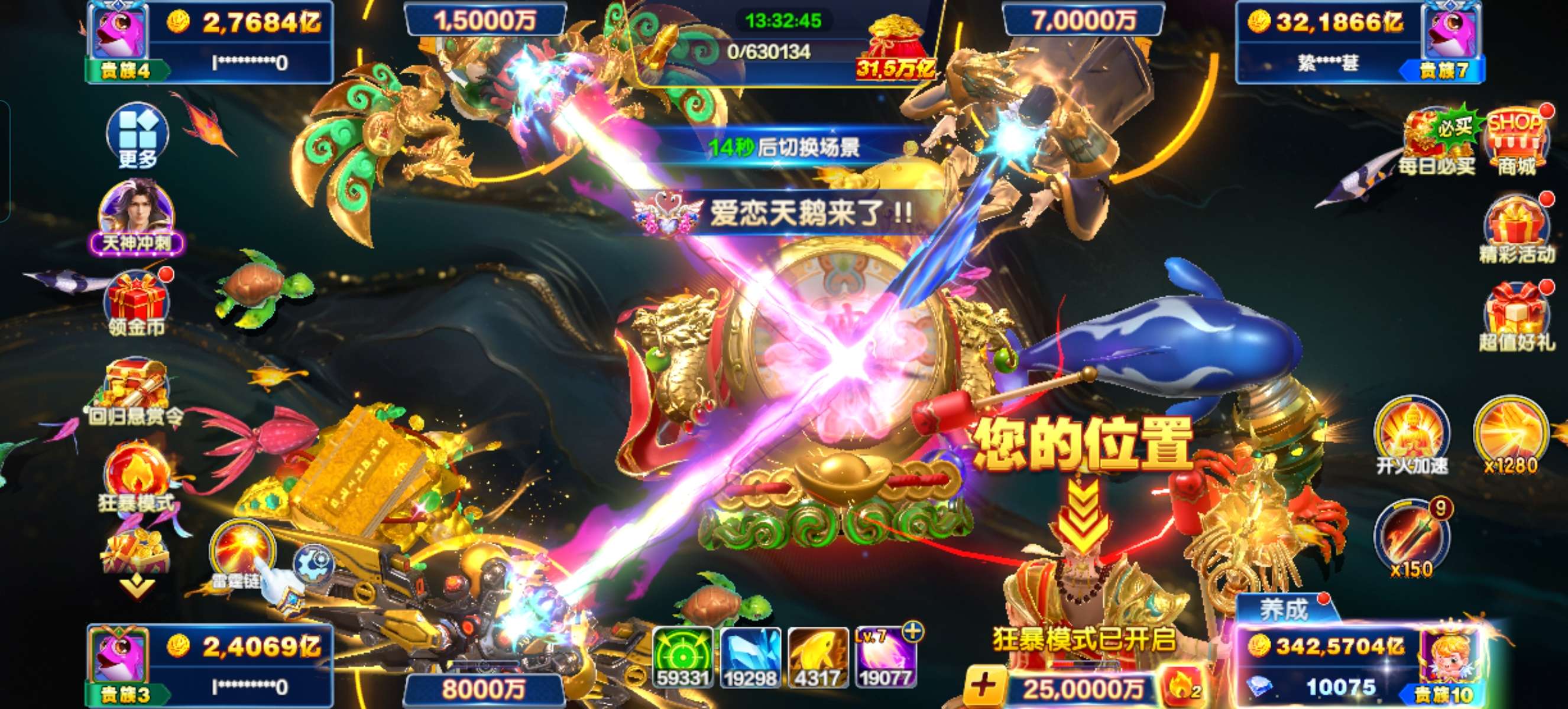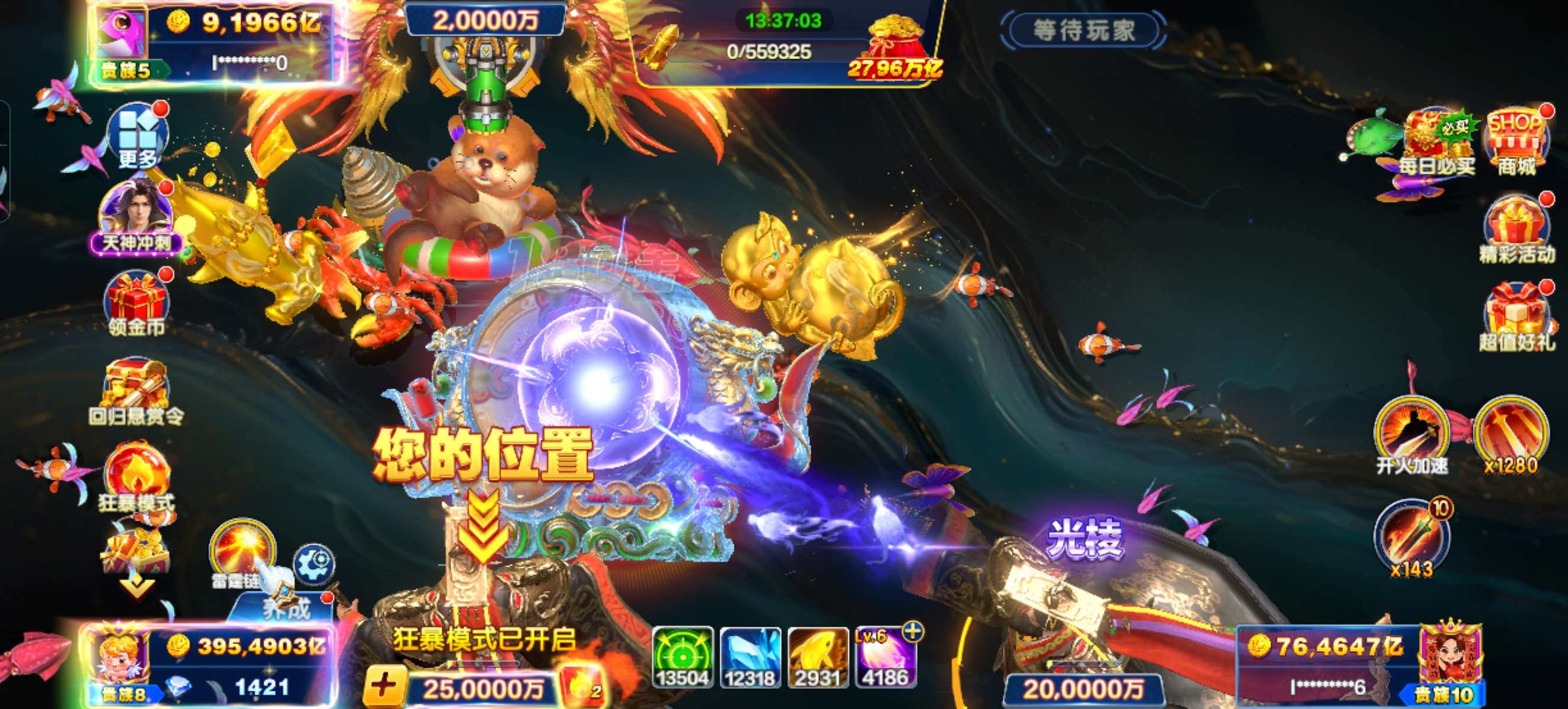 捕鱼大咖小米版本1000万亿10亿炮限时25亿炮VIP9,永久天神