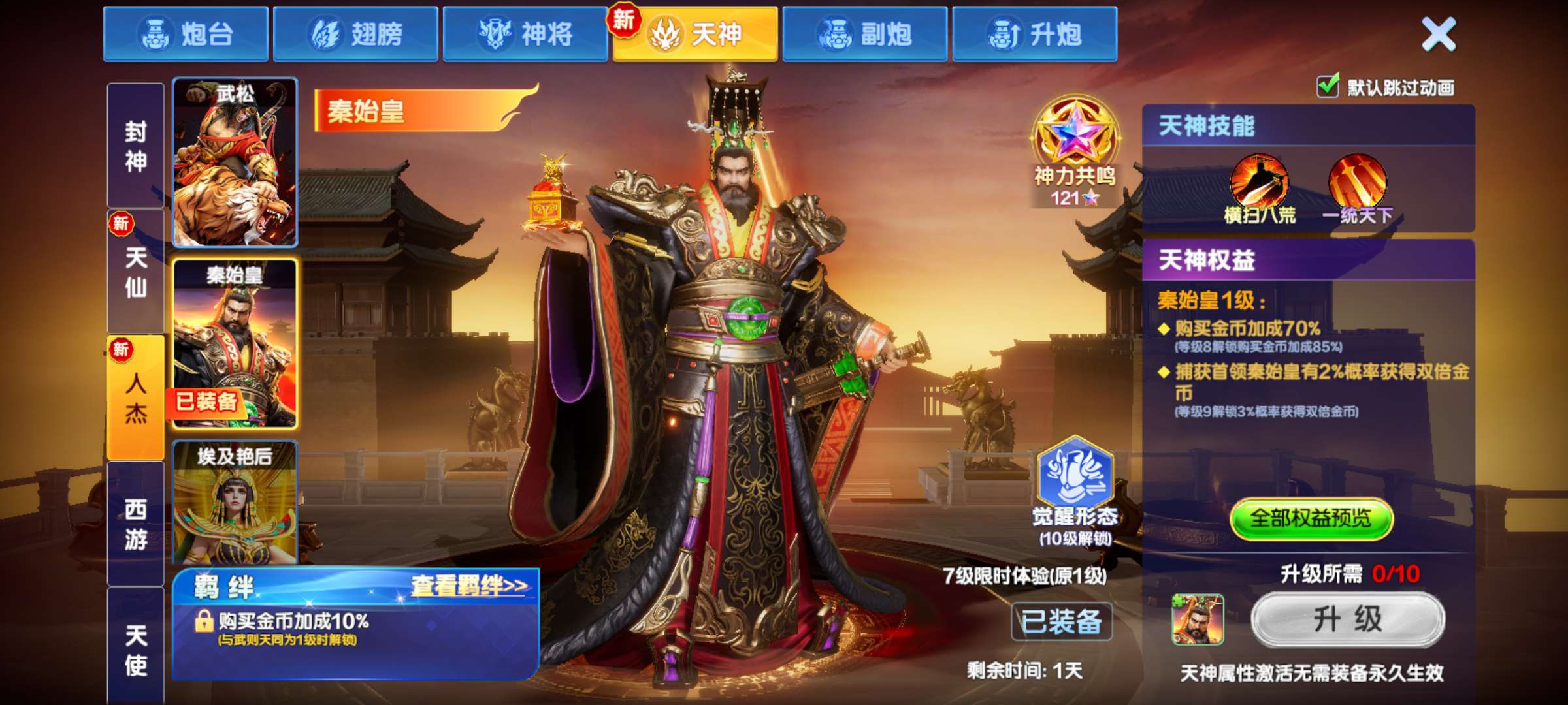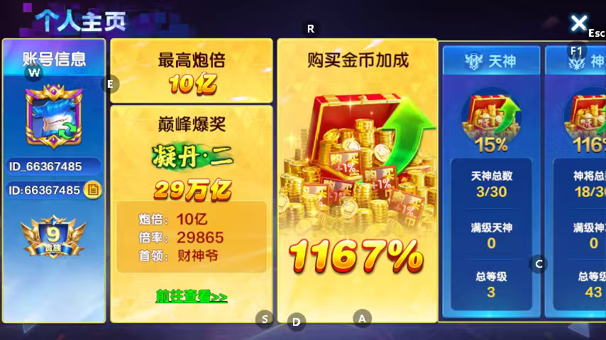 捕鱼大咖官方纯玩全部天神副炮 0.007比例 10万亿7元