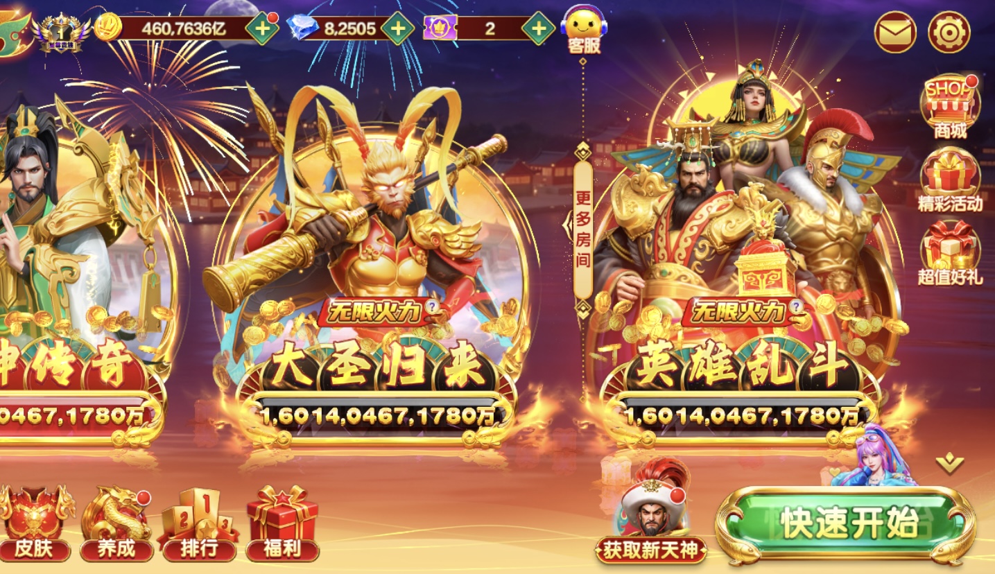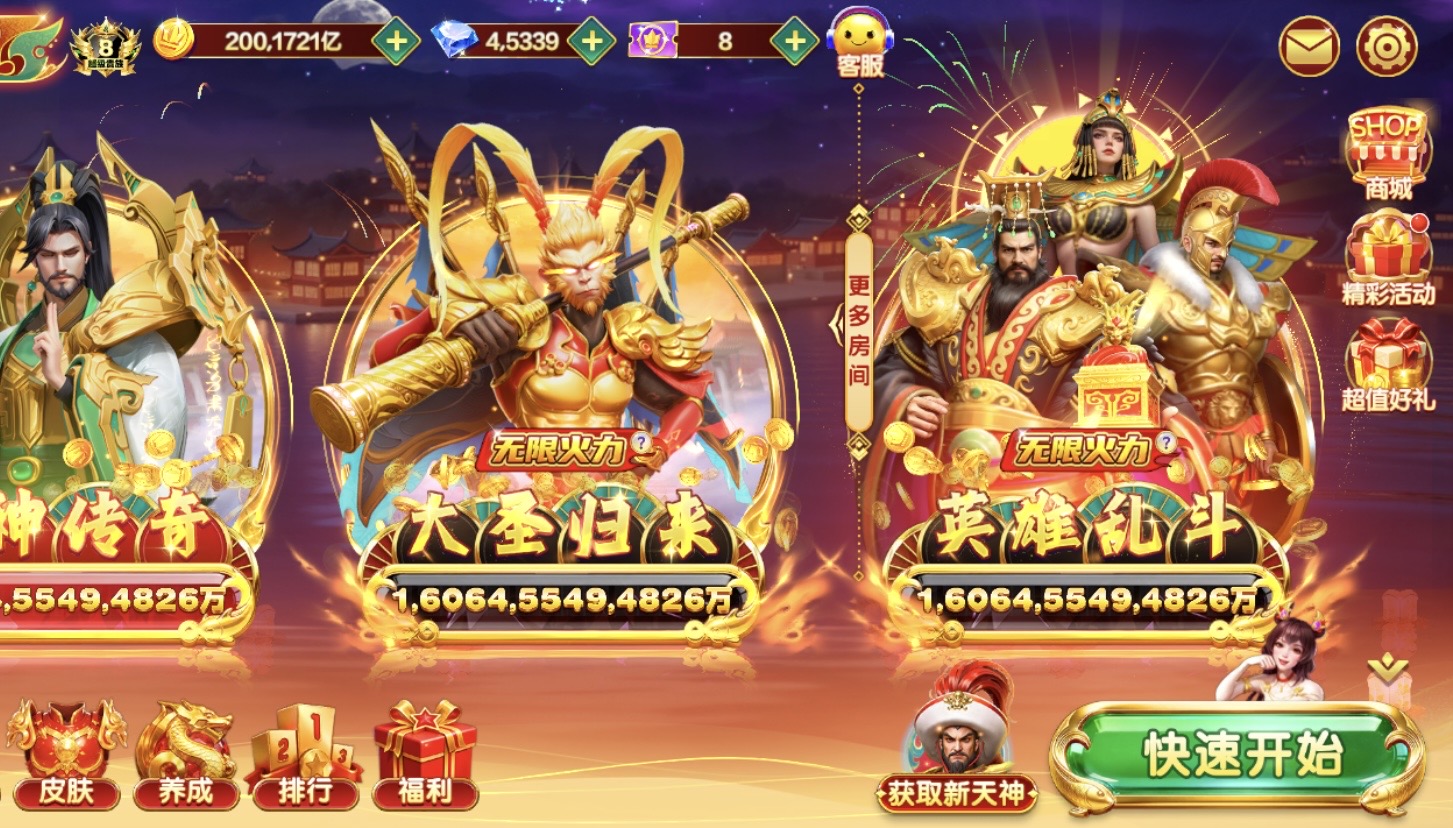 v12 20亿炮 文字号6永久天神有三国羁绊 每天6块钱都能上分 最低能打一个8000倍boss