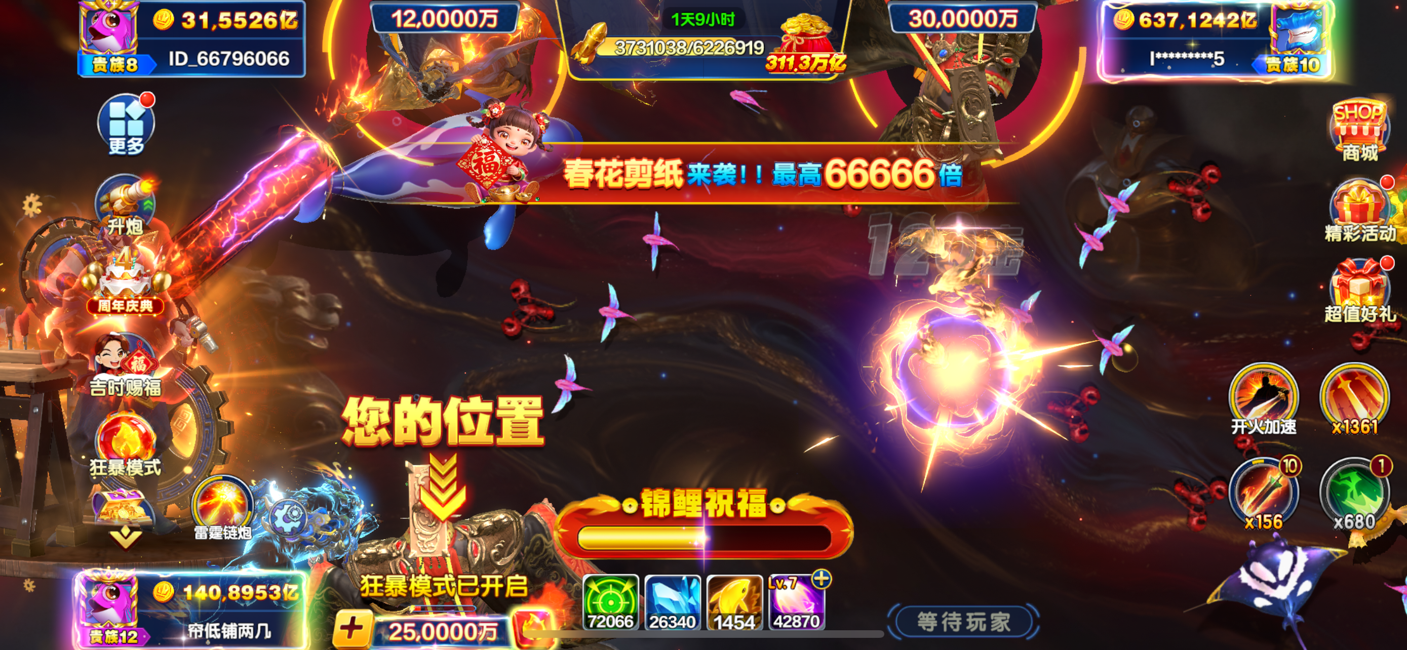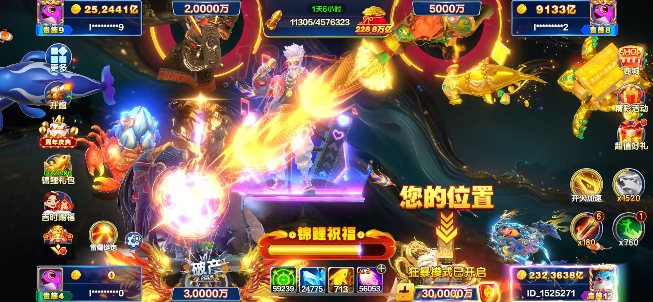 官方ID号,SVIP3,天神18,炮倍30,副炮3,加成2284,月卡1000天,手机号可解绑