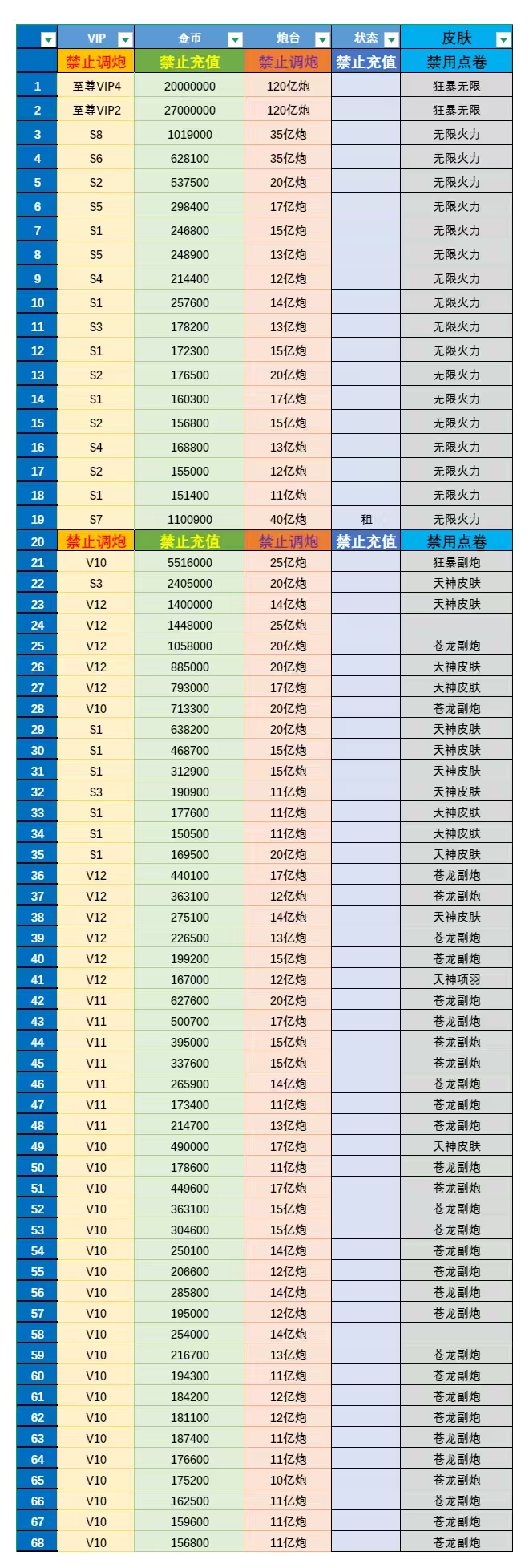 5000万亿金币,超级贵族1,无限火力,40亿炮限时,实炮20亿,永久天神,永久副炮超低价处理买断