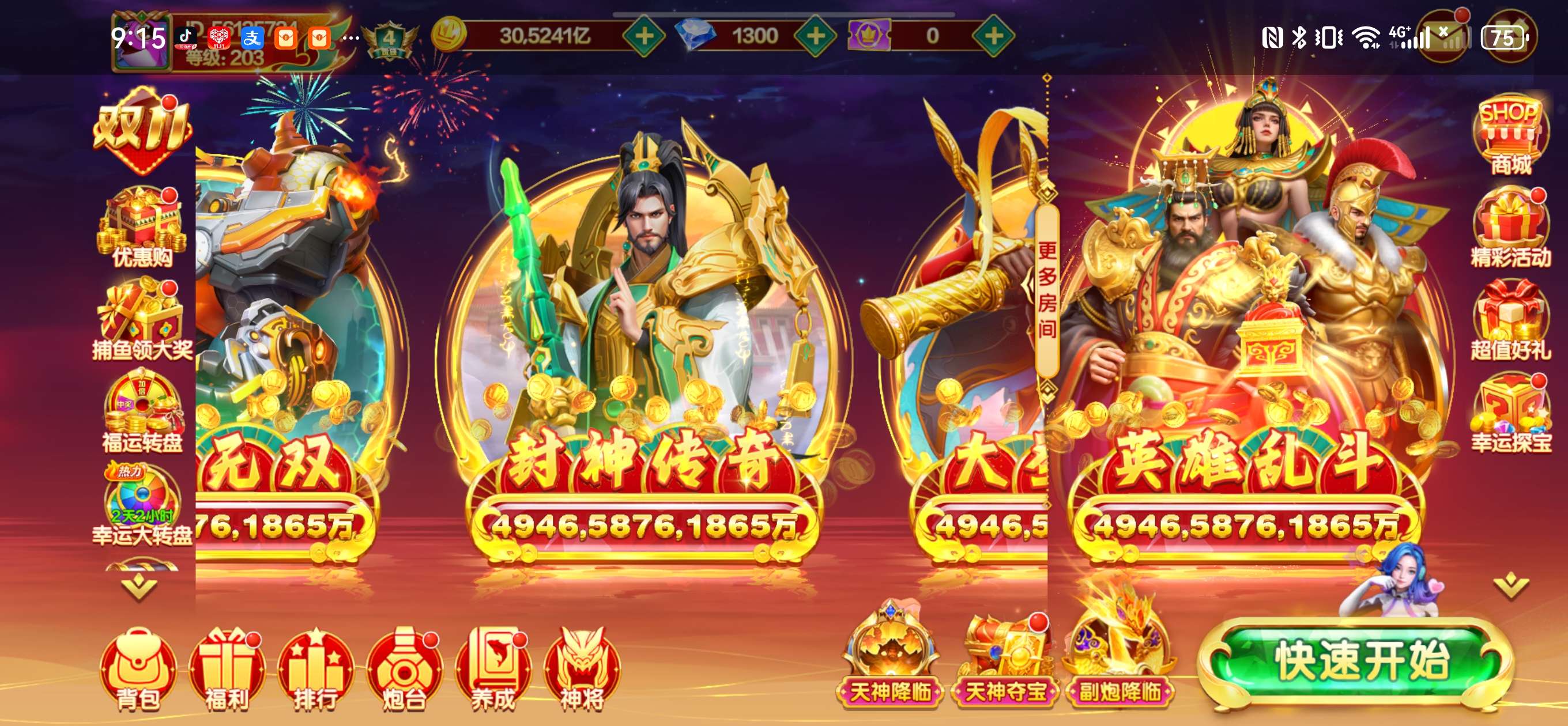捕鱼大咖联想版天神副炮号,4.5炮实炮 限时9炮 永久副炮和金蛇天神 25万亿 破产号退回可反75