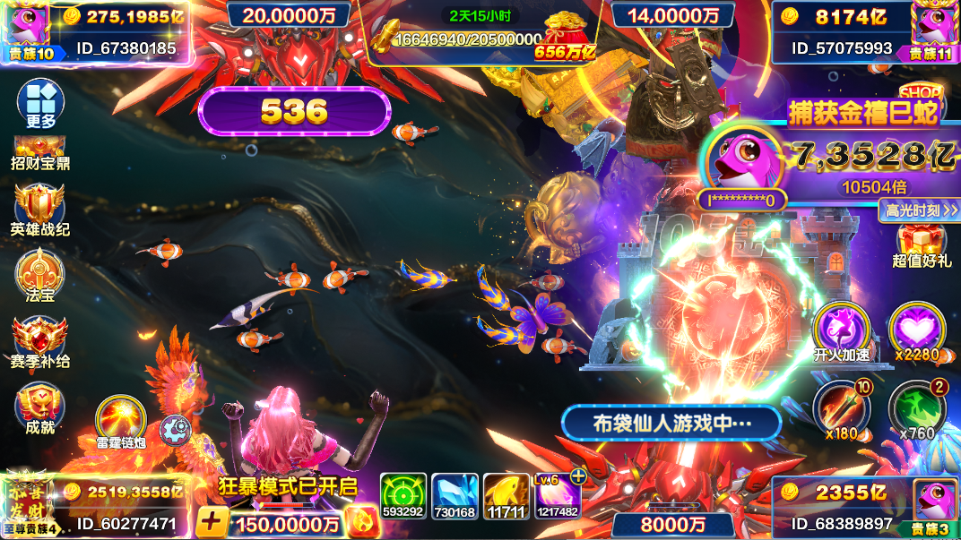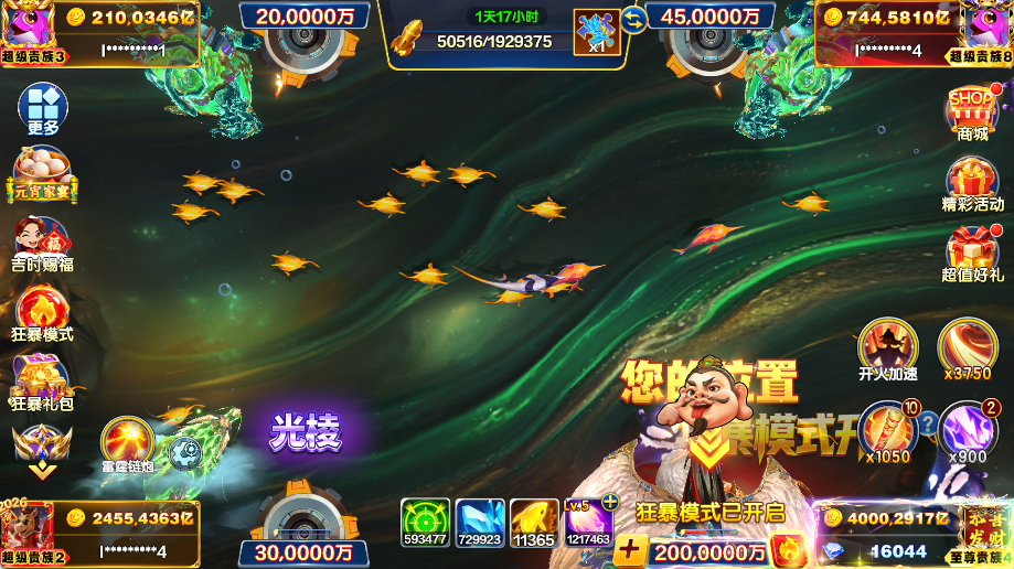 捕鱼大咖官方版 虚炮30 带狂暴 有天神副炮 纯玩不出号 特价了
