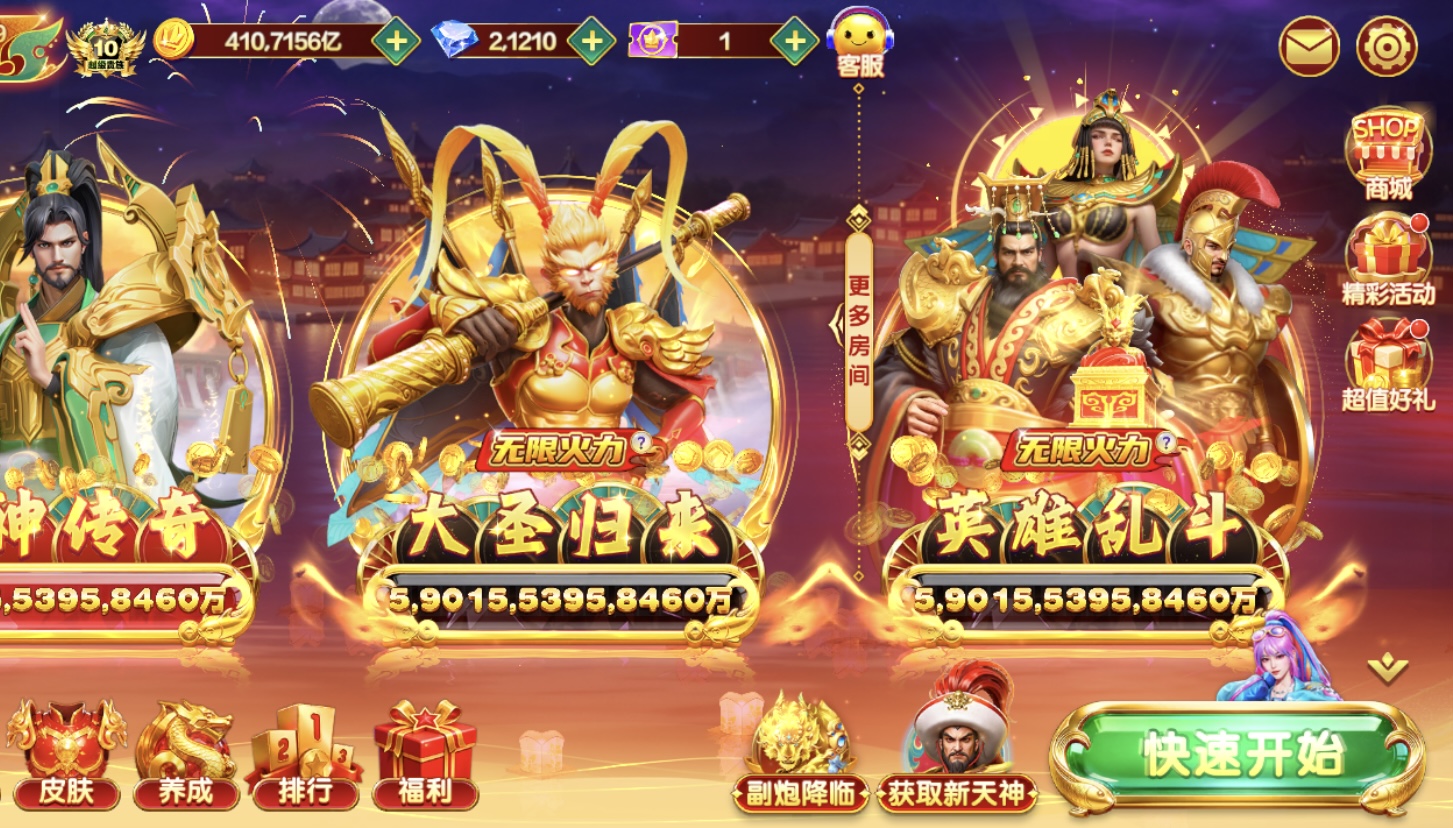 华为版捕鱼大咖实充5万多天神多多副炮3/炮台30亿特权10