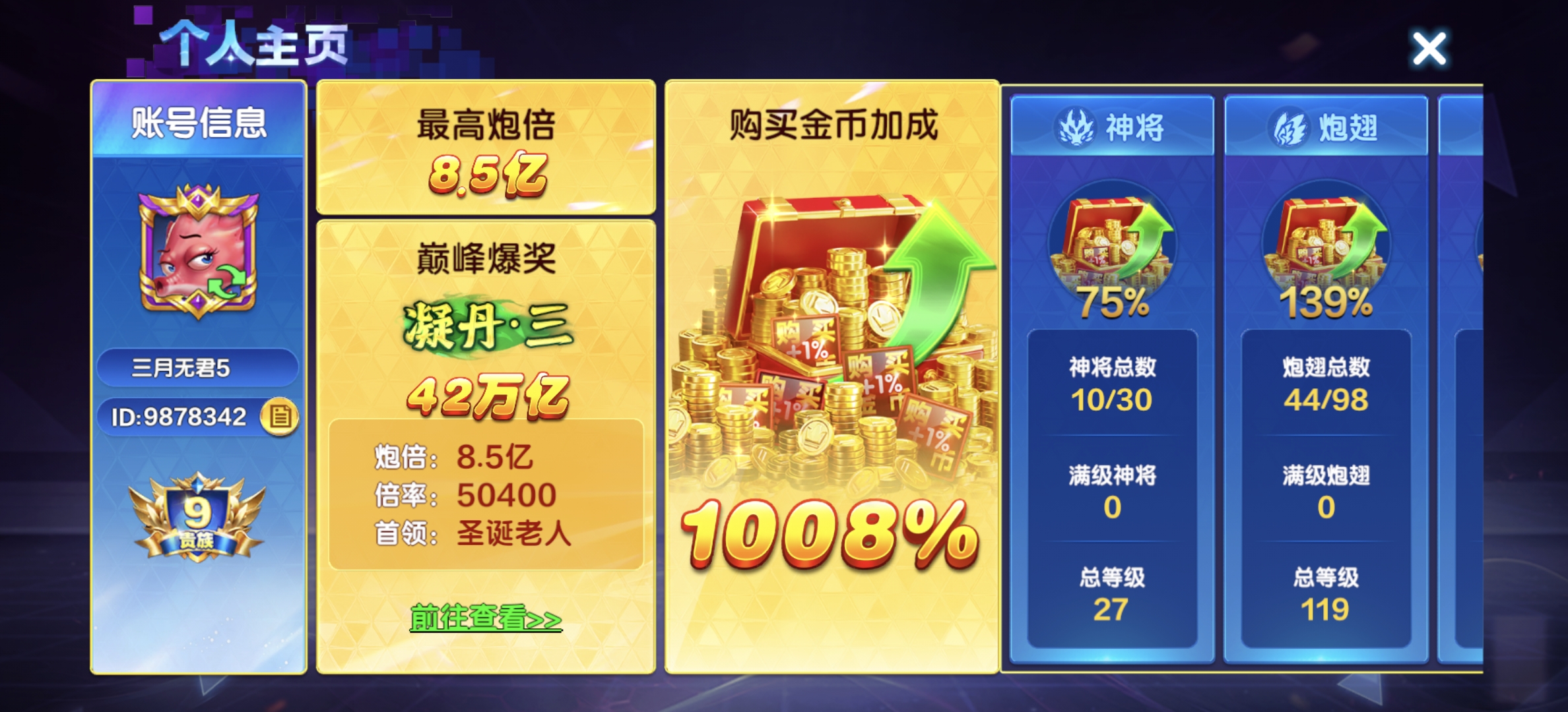 捕鱼大咖联想 700 万亿,10 炮,加成领码可以到 15 炮+好几天副炮都没领,双永久天神 v9,
