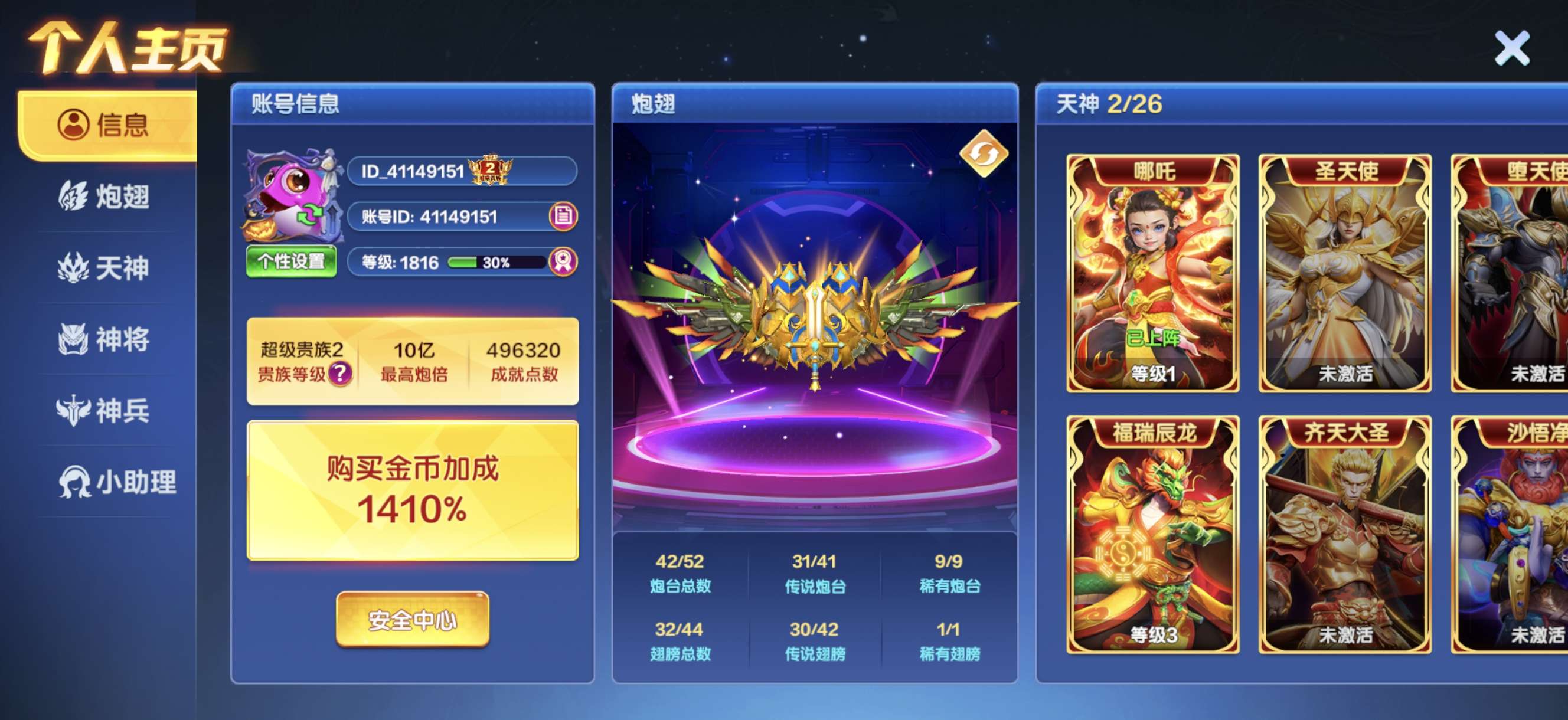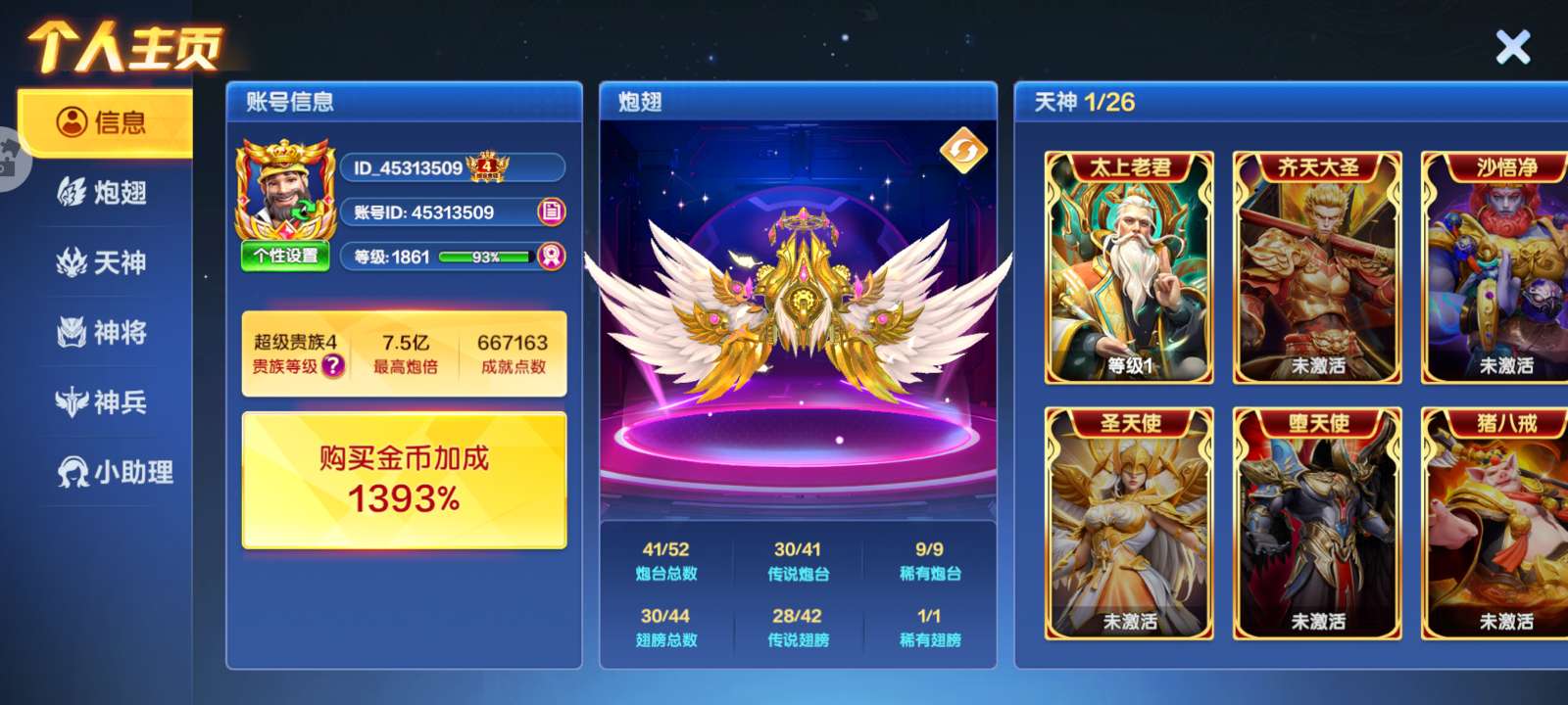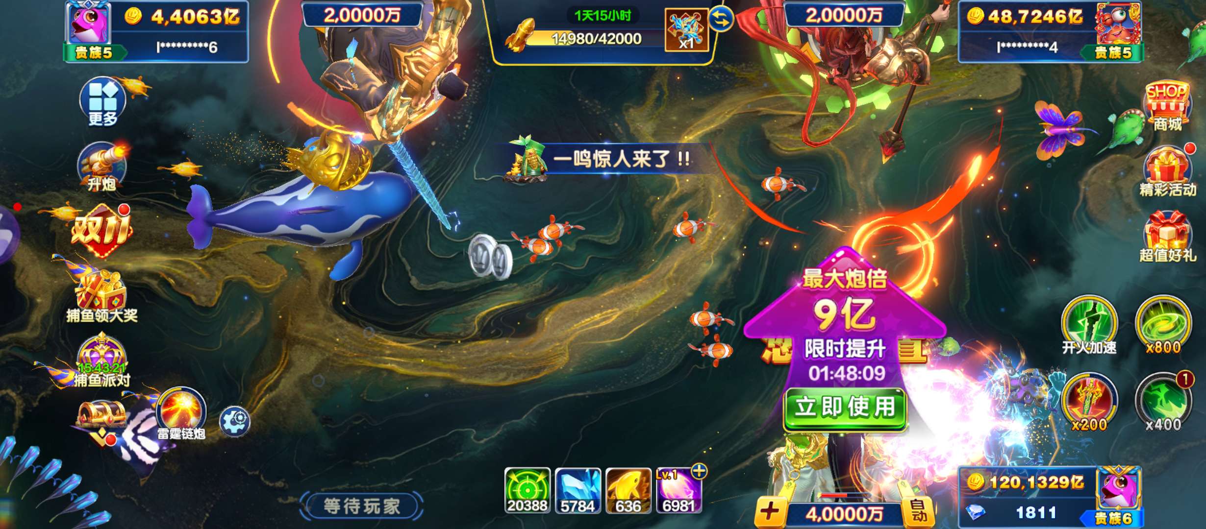 捕鱼大咖【安卓官方】官方ID s5 加成2156 30亿炮倍 双副炮