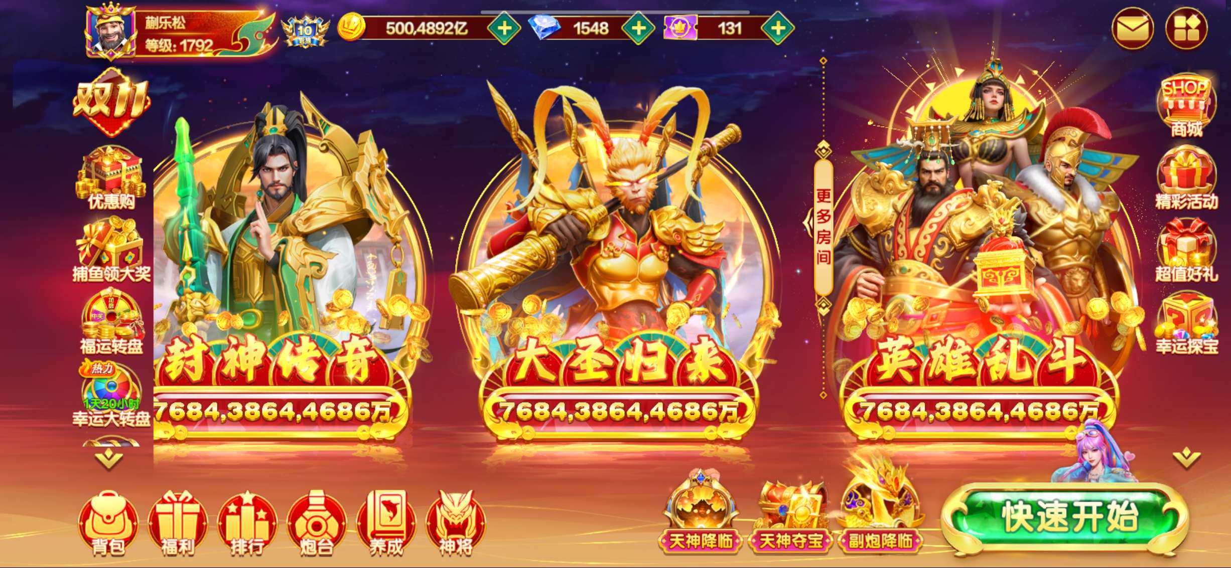 捕鱼大咖【安卓联想】捕鱼大咖联想版,120万亿正常号,4亿实炮,限时副炮,限时天神三级光。今天5次炼丹炉,明天三国。