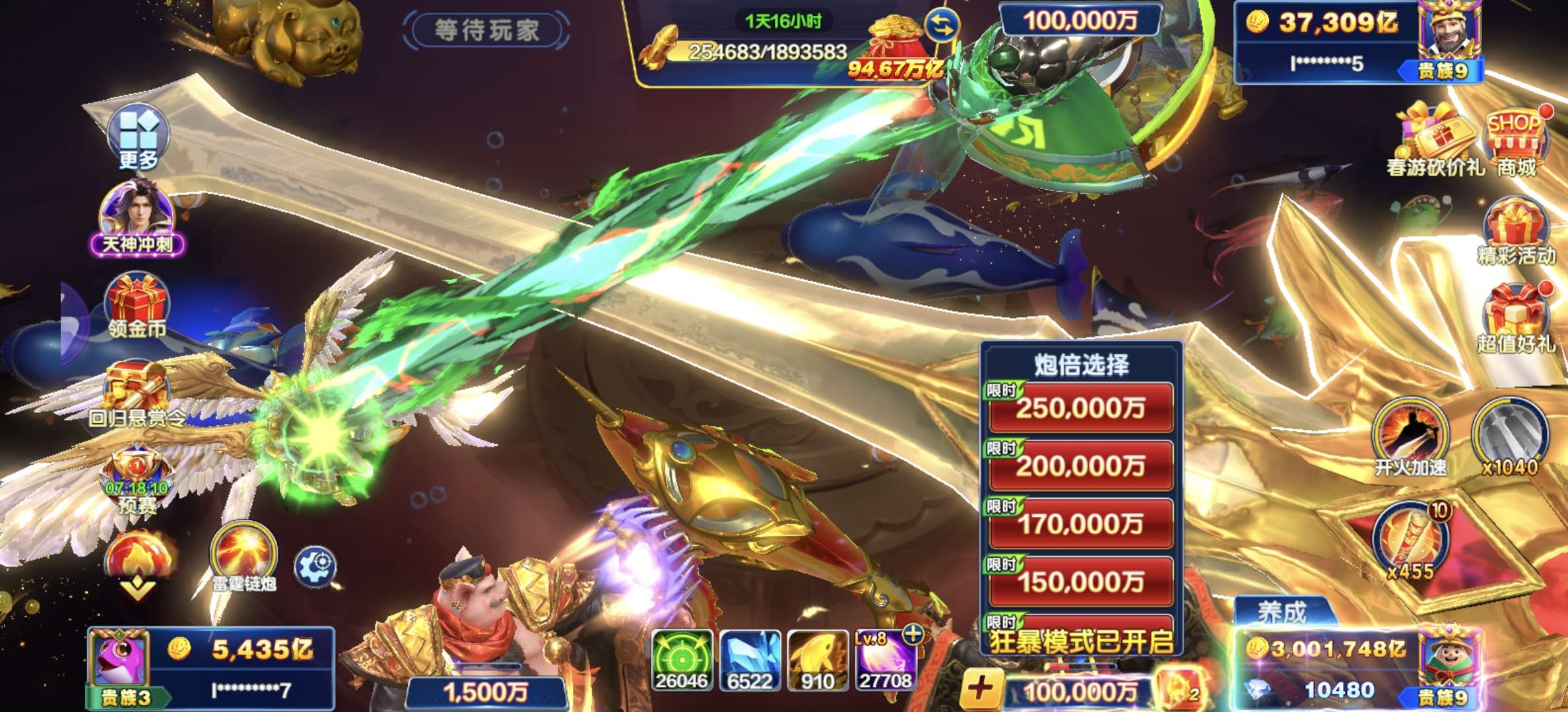 至尊贵族3无限火力380万亿纯玩, 可回,拍号先咨询