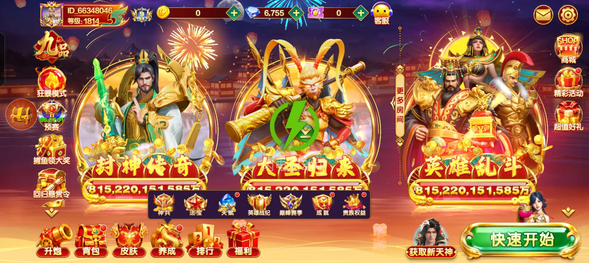 大咖官服,苹果安卓通用,8.5亿炮限时20亿炮325万亿,永久天神,狂暴已开