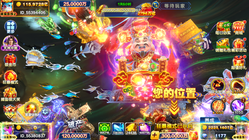 捕鱼大咖无限火力纯玩,2200万亿。