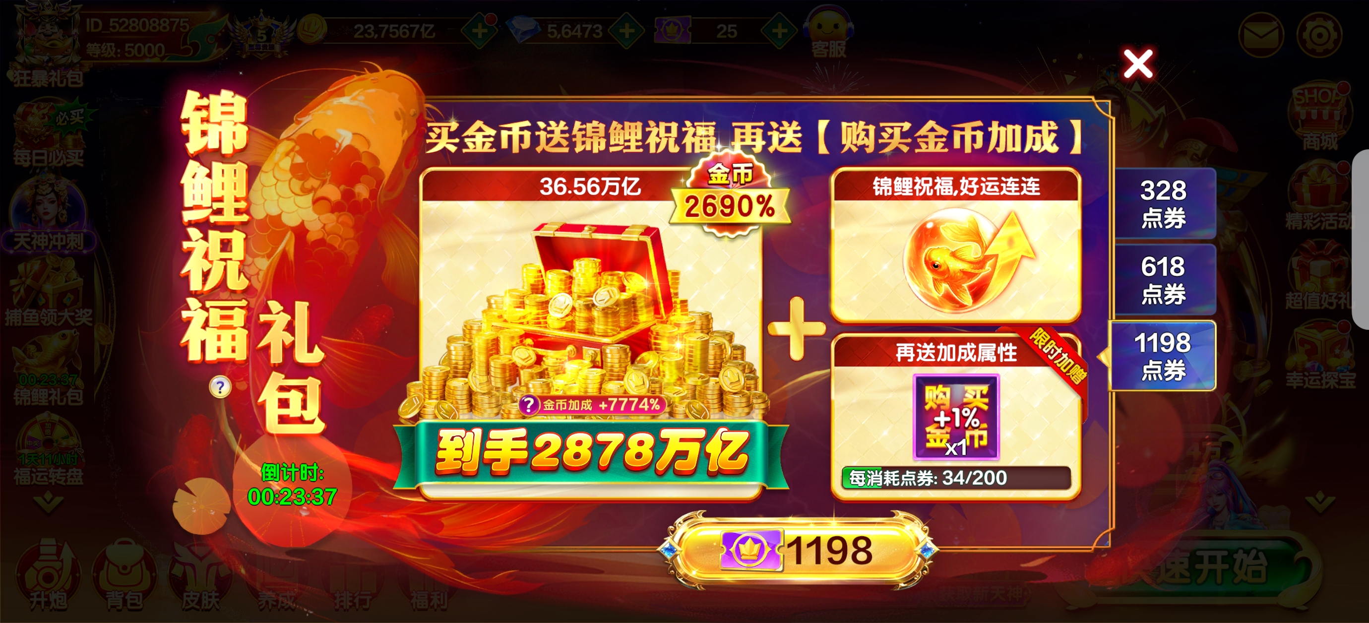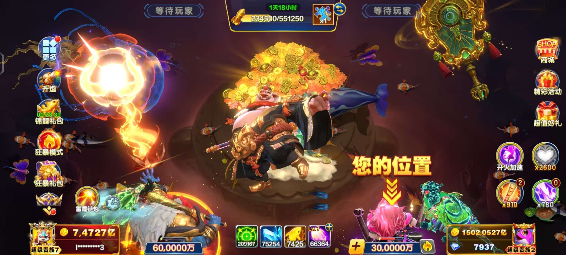 捕鱼大咖极品文字s2,十多个天神,两千多加成,外加一千五百万亿金币,脱坑出