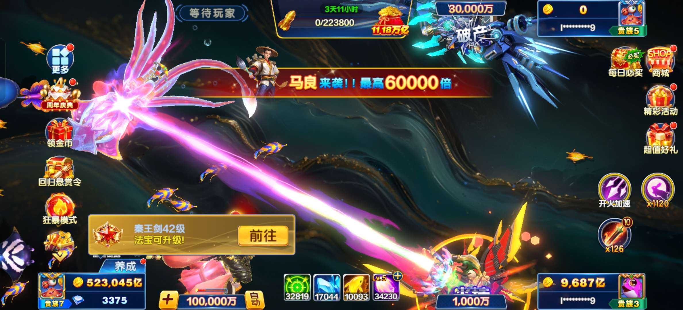 捕鱼大咖无限火力纯玩,6300万亿,破产改密