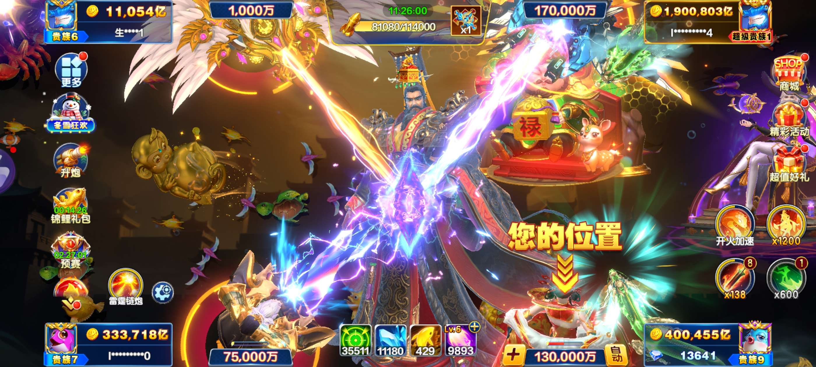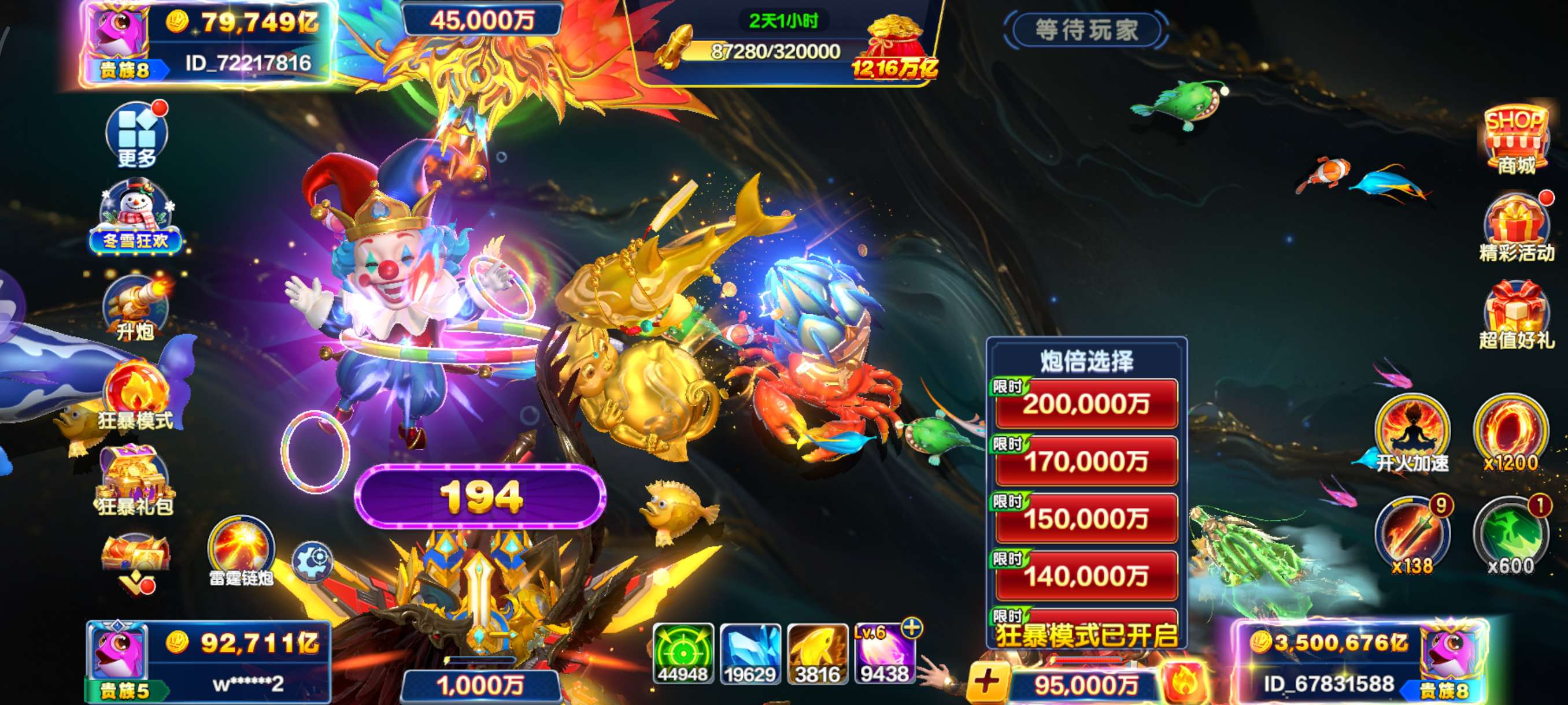捕鱼大咖纯玩260万亿狂暴天神8级光