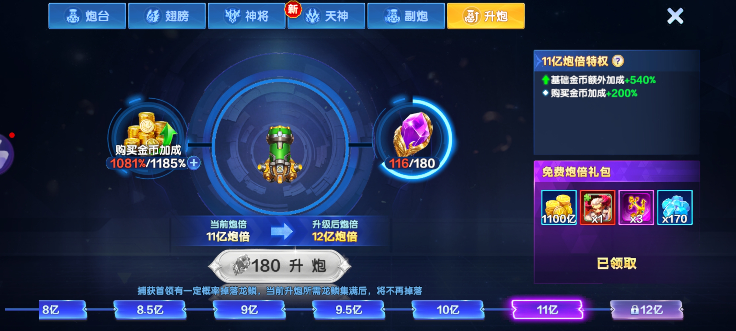 捕鱼大咖文字号,1200万亿金币--v11---11亿炮倍,加成1500,有永久副炮,马上v12