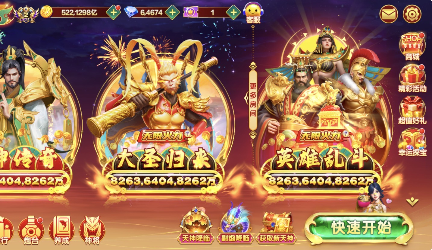 捕鱼大咖官方纯玩永久副炮,天神好几个三国羁绊也有。要的滴我超便宜,破产改密另外也可支持打回平推