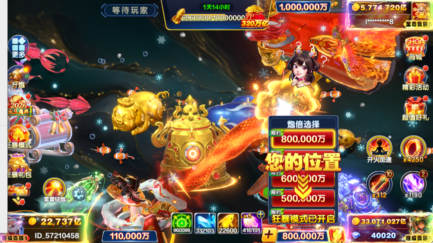 捕鱼大咖官方号 金币1050万亿 千万亿账号买断 准12