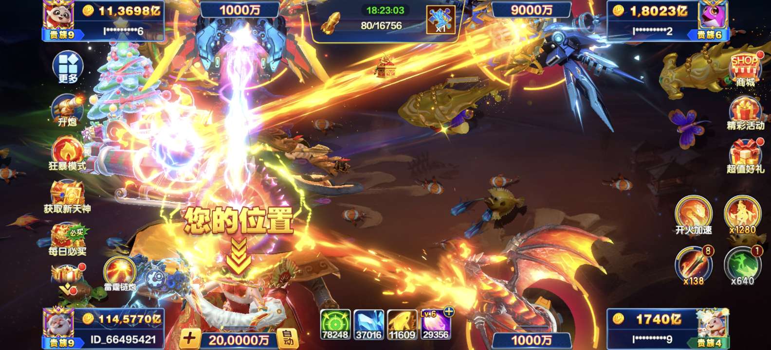 捕鱼大咖官方纯玩永久天神副炮六级光爆发高,随便打几条鱼就有狂暴模式,要的滴滴超便宜打到破产为止