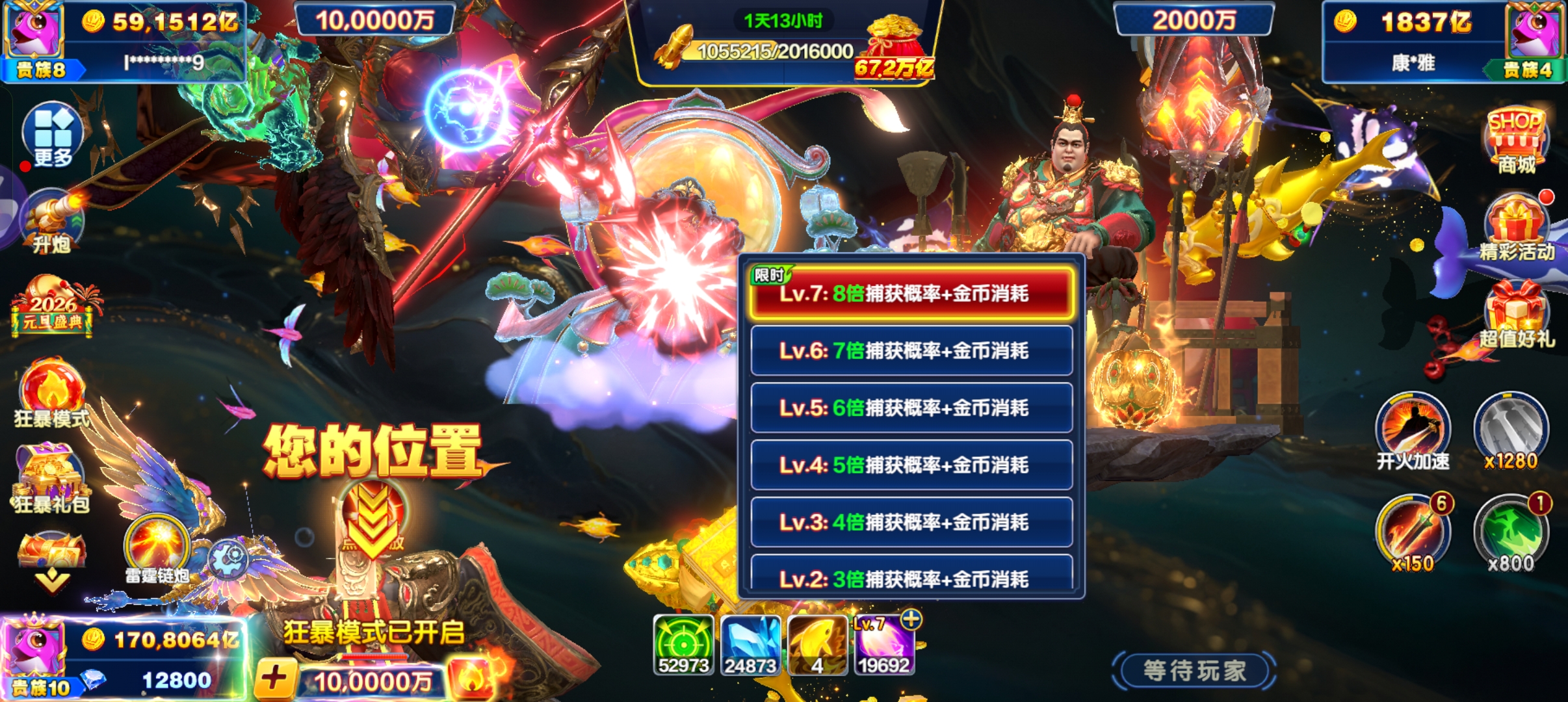 捕鱼大咖官方s7,17炮,加成够30炮。