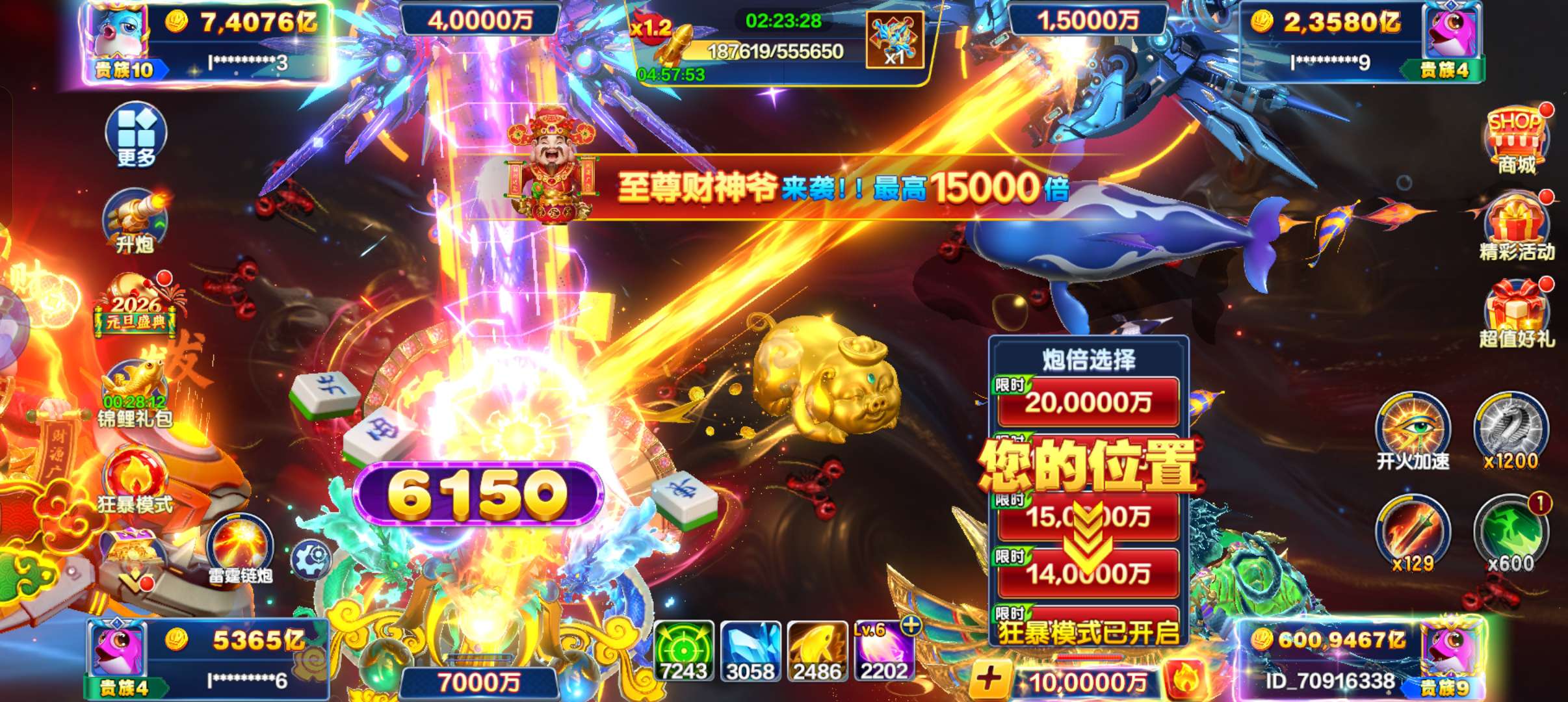 捕鱼大咖联想 600 万亿,10 炮 v9,最高 36 万倍鲁班,无敌爆发